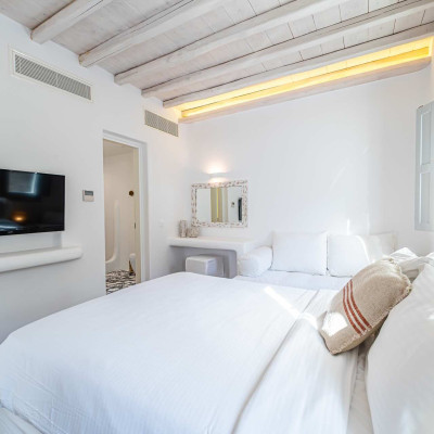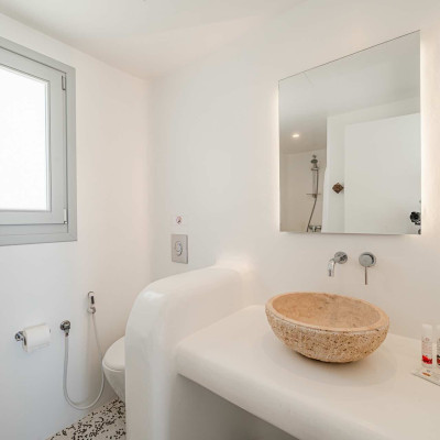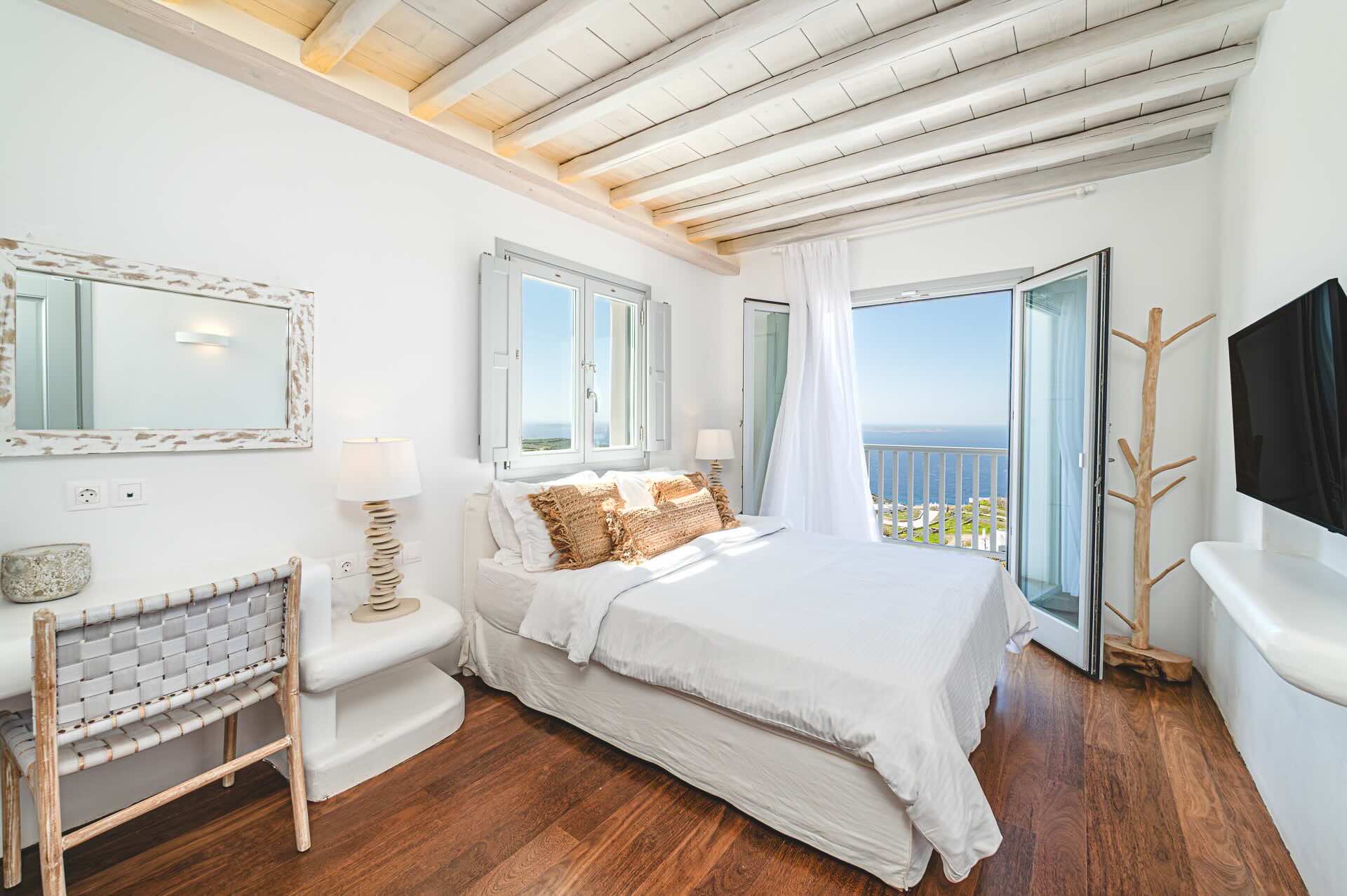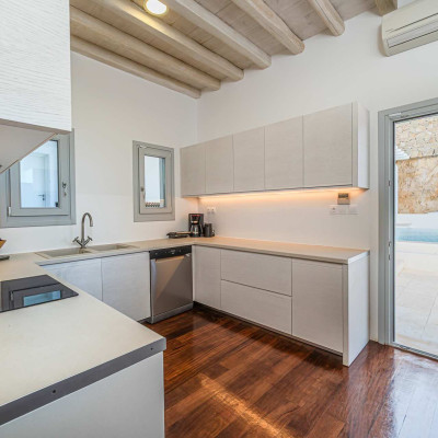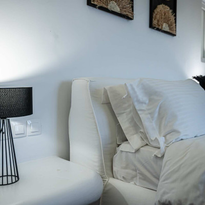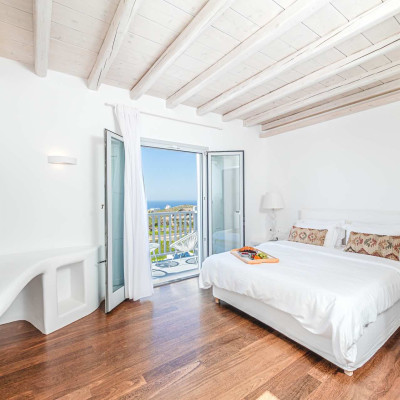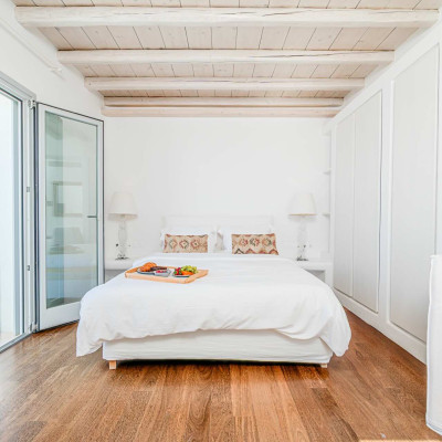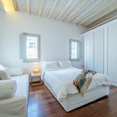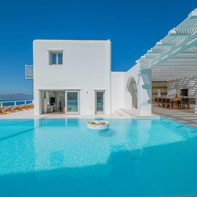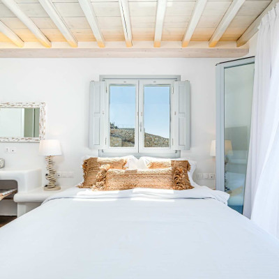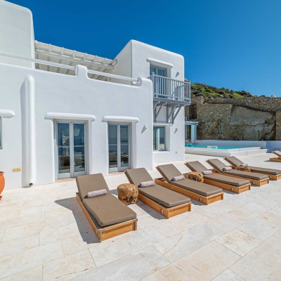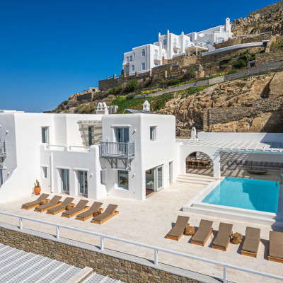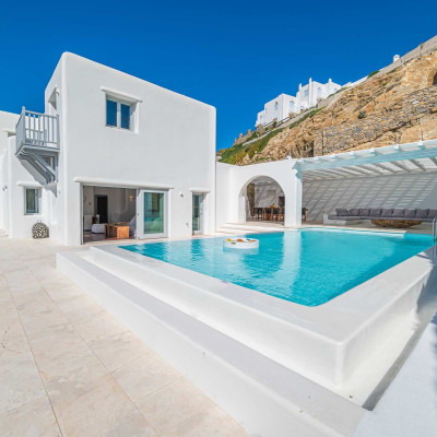 The luxurious 220 sq. meter, 5-bedroom villa is a stunning property meticulously designed to offer a fairy-tale holiday experience. Nestled in the scenic Kastro area, near the new port of Mykonos and overlooking the Aegean sea all the way to Tinos island this villa combines elegance with an idyllic location, promising an unforgettable stay.