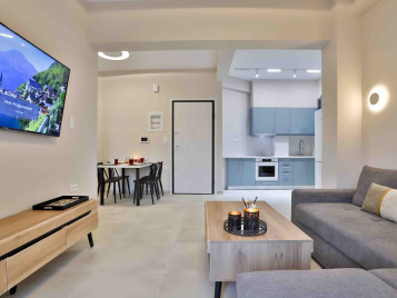 Two-Bedroom Boho House Sea view Cycladic house with rustic details, minimal indoor living area and equipped kitchenette, bathroom with walk-in shower, and walk-in closets. There is a private East-oriented terrace, sunrise and sea view, outdoor dining and relaxing area with sun loungers. Also equipped with TV, free Wi-Fi, full-size bathroom amenities.