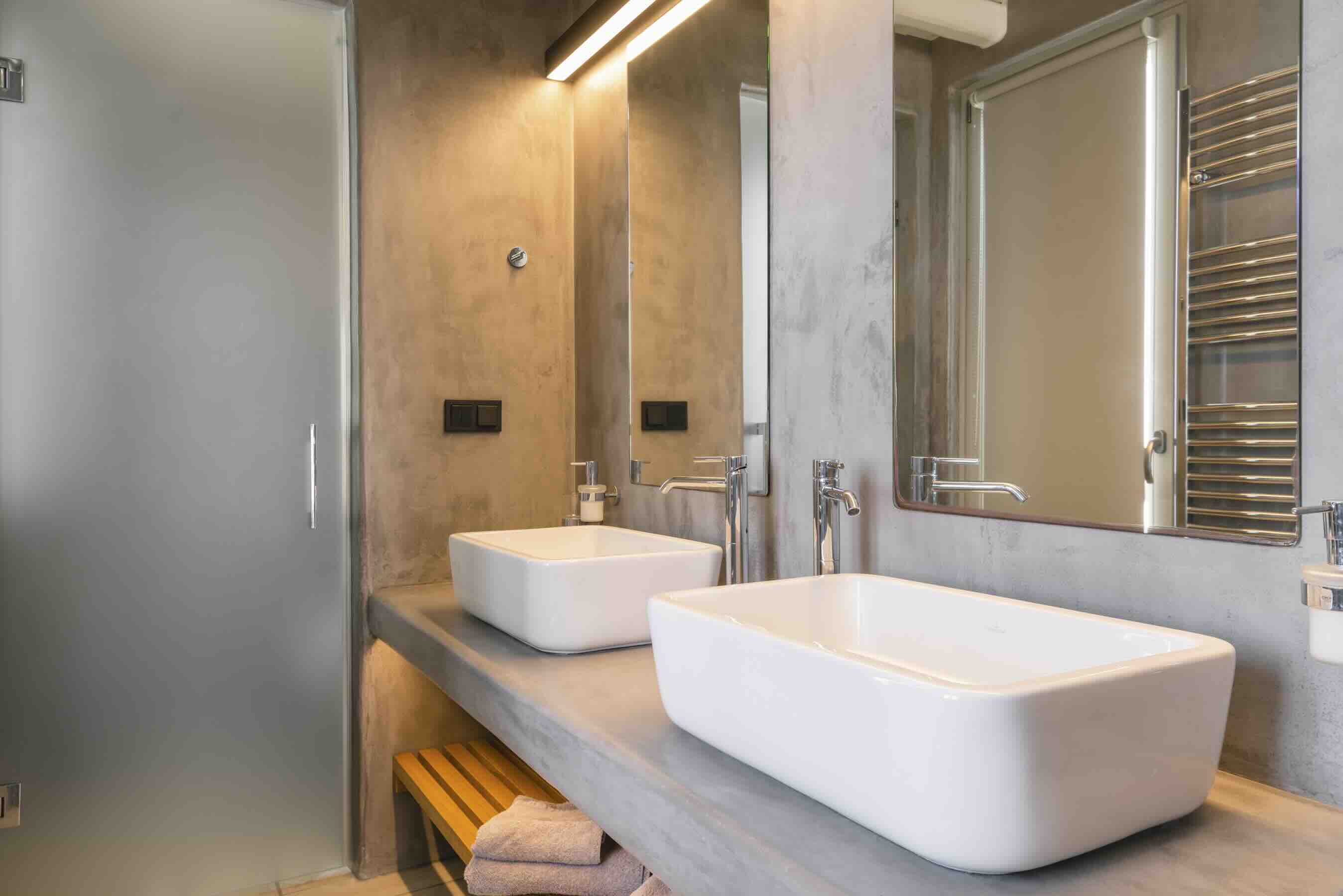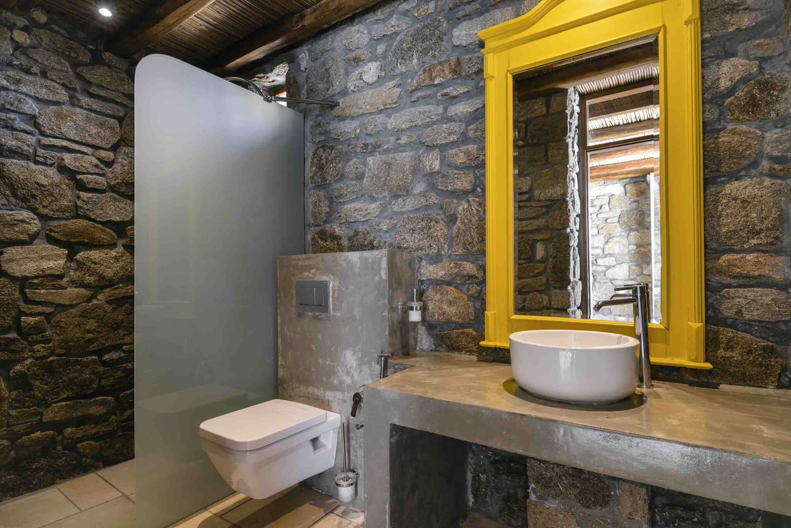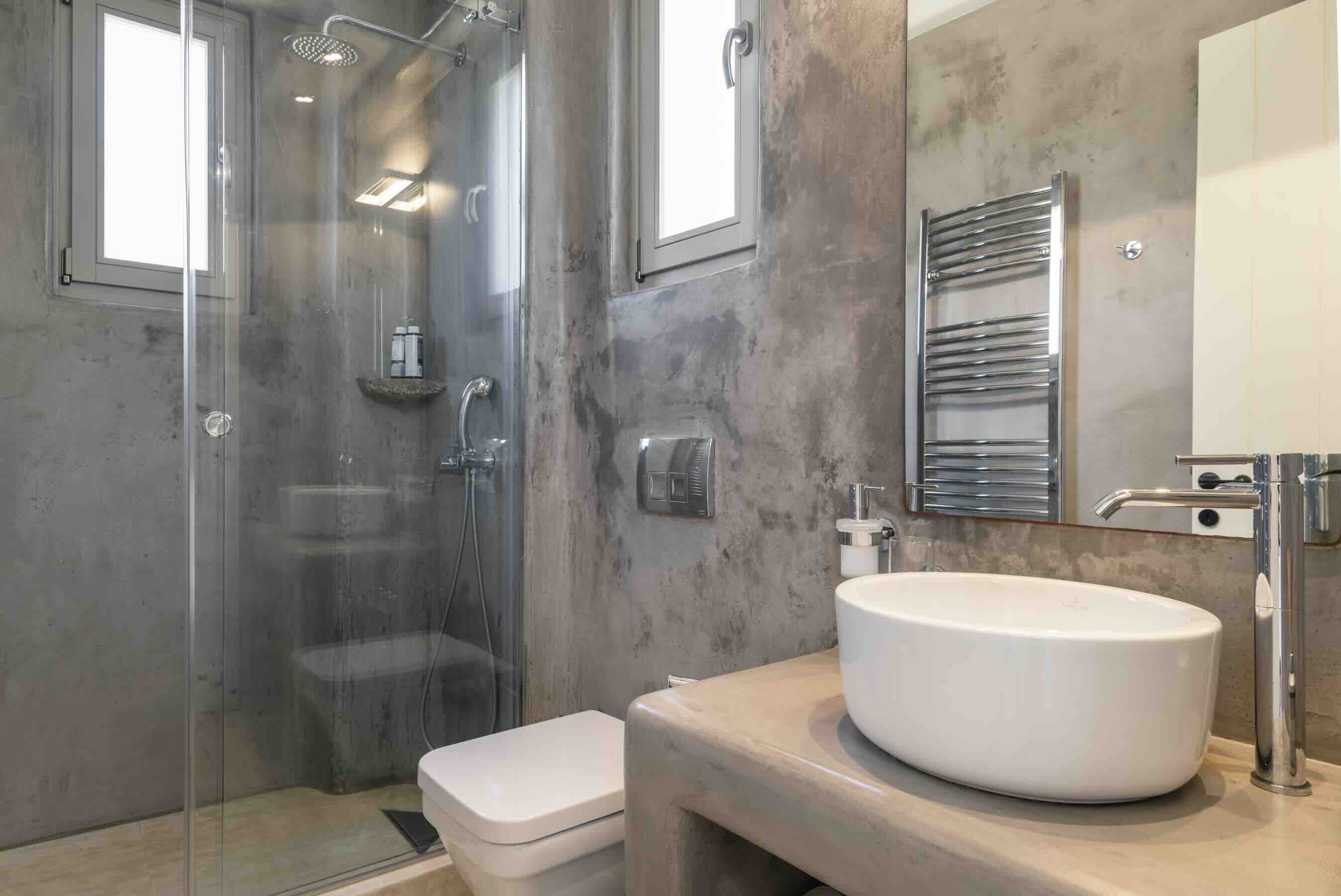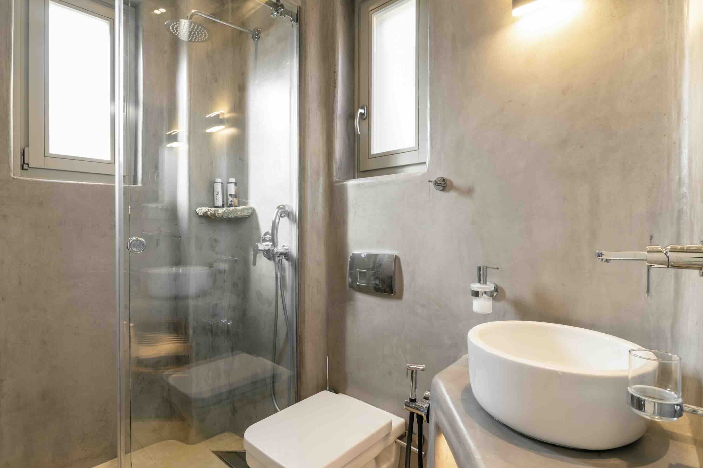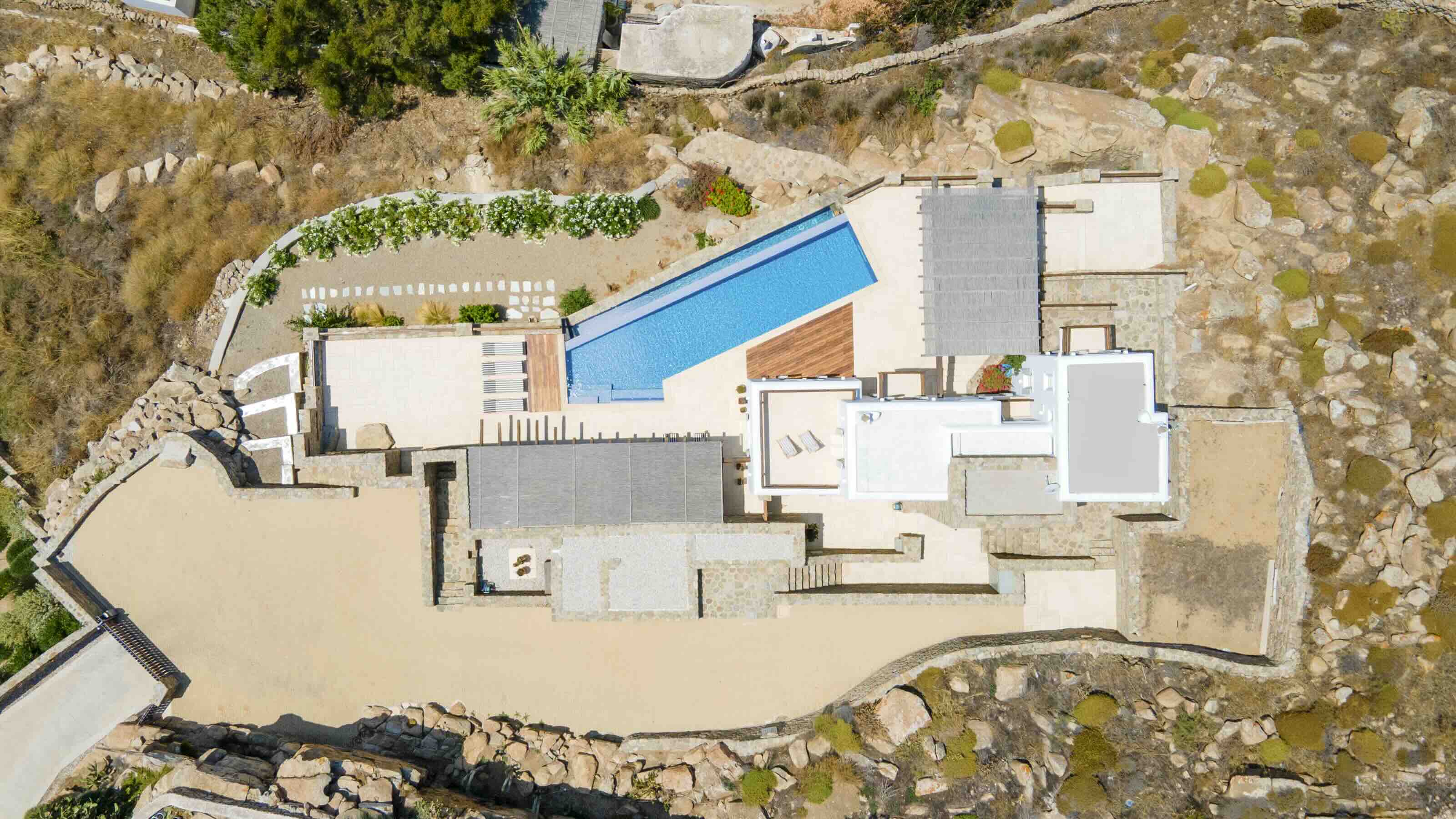 The outdoor common areas consist mainly of the private swimming pool, a spacious, relaxing, and romantic environment, designed to contribute to your rejuvenation during your vacation on Mykonos Island. Swim in the comfortable swimming pool of the villa and enjoy the Mediterranean sun in one of the cozy sun lounges around the pool.