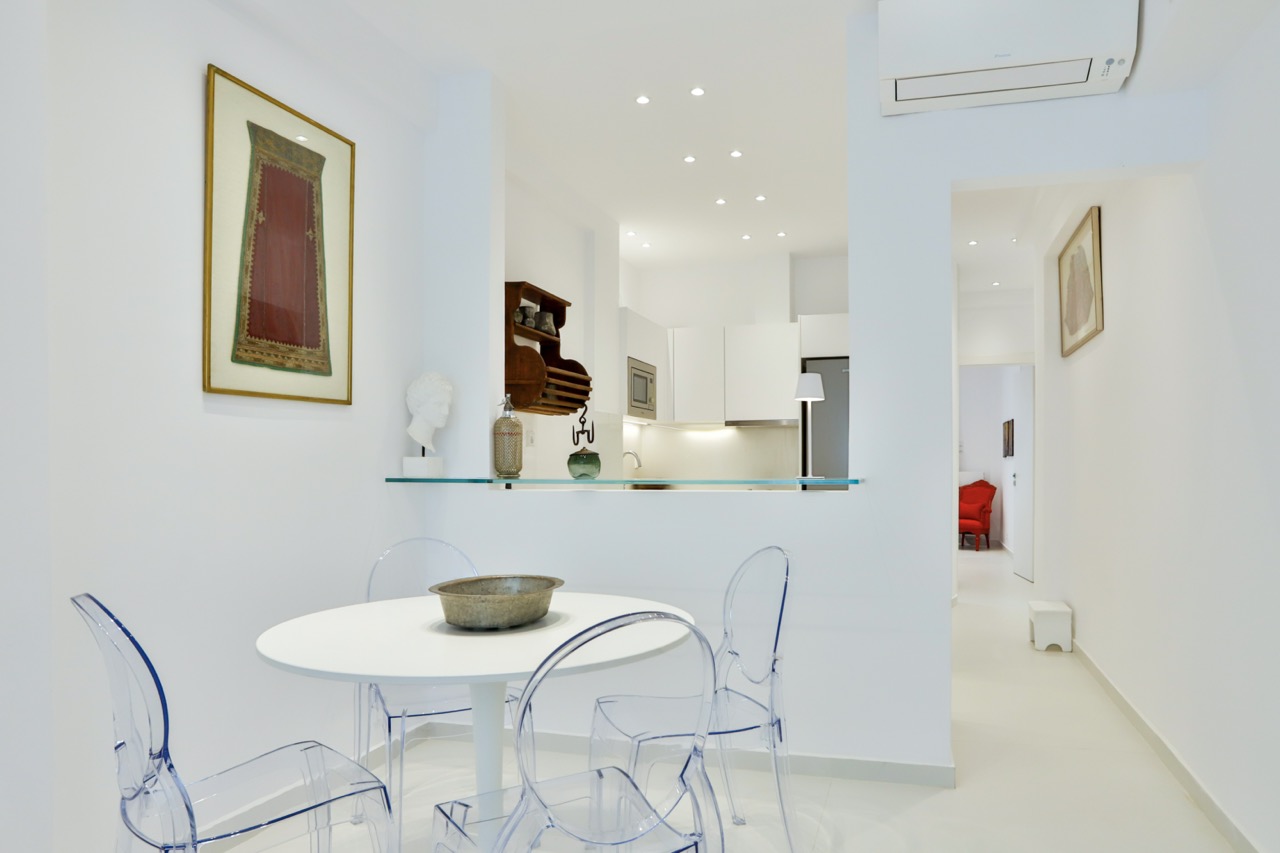 What makes this unit truly special is its private garden patio — a small green oasis ideal for morning coffee or quiet evenings under the Athenian sky. High ceilings, antique accents, and warm tones complete the atmosphere of discreet elegance. Perfect for couples, small families, or friends seeking comfort and authenticity just steps from the Acropolis walkway.