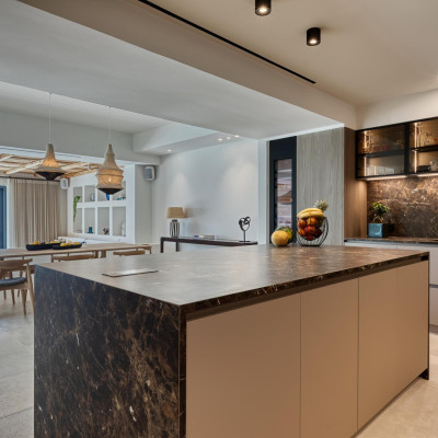 A bespoke kitchen equipped with high-end Gaggenau appliances offers the perfect space for culinary creations, whether casual family meals or formal dining experiences. With ample space and state-of-the-art features, it caters to even the most discerning chef.