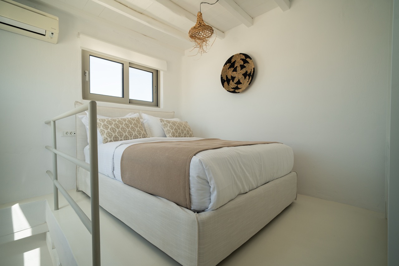 Spread across three levels, the villa accommodates up to eight guests in four en-suite double bedrooms. Bright interiors feature minimalist design and open onto outdoor spaces that highlight the surrounding seascape.