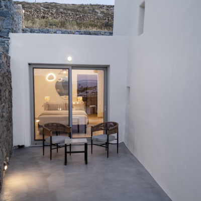 Private parking and a secluded setting enhance the villa’s comfort and exclusivity, while its close proximity to Mykonos Town ensures easy access to the island’s cosmopolitan energy.
