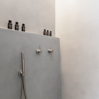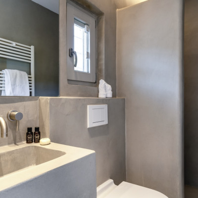 Spacious open-plan en-suite bathroom with rain shower