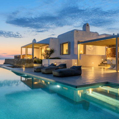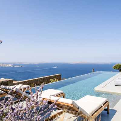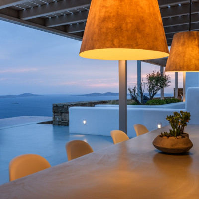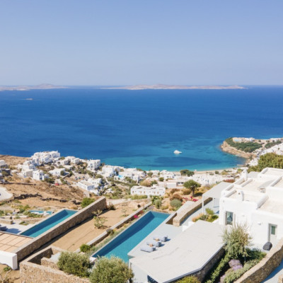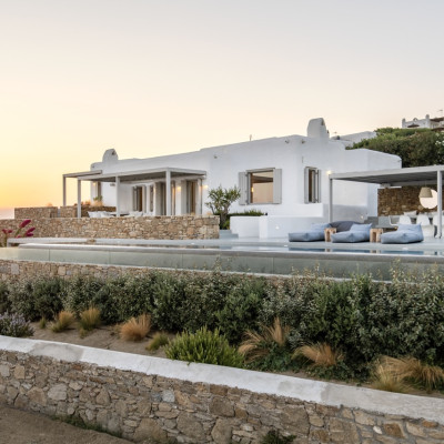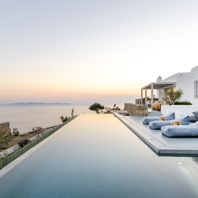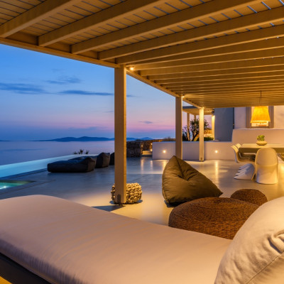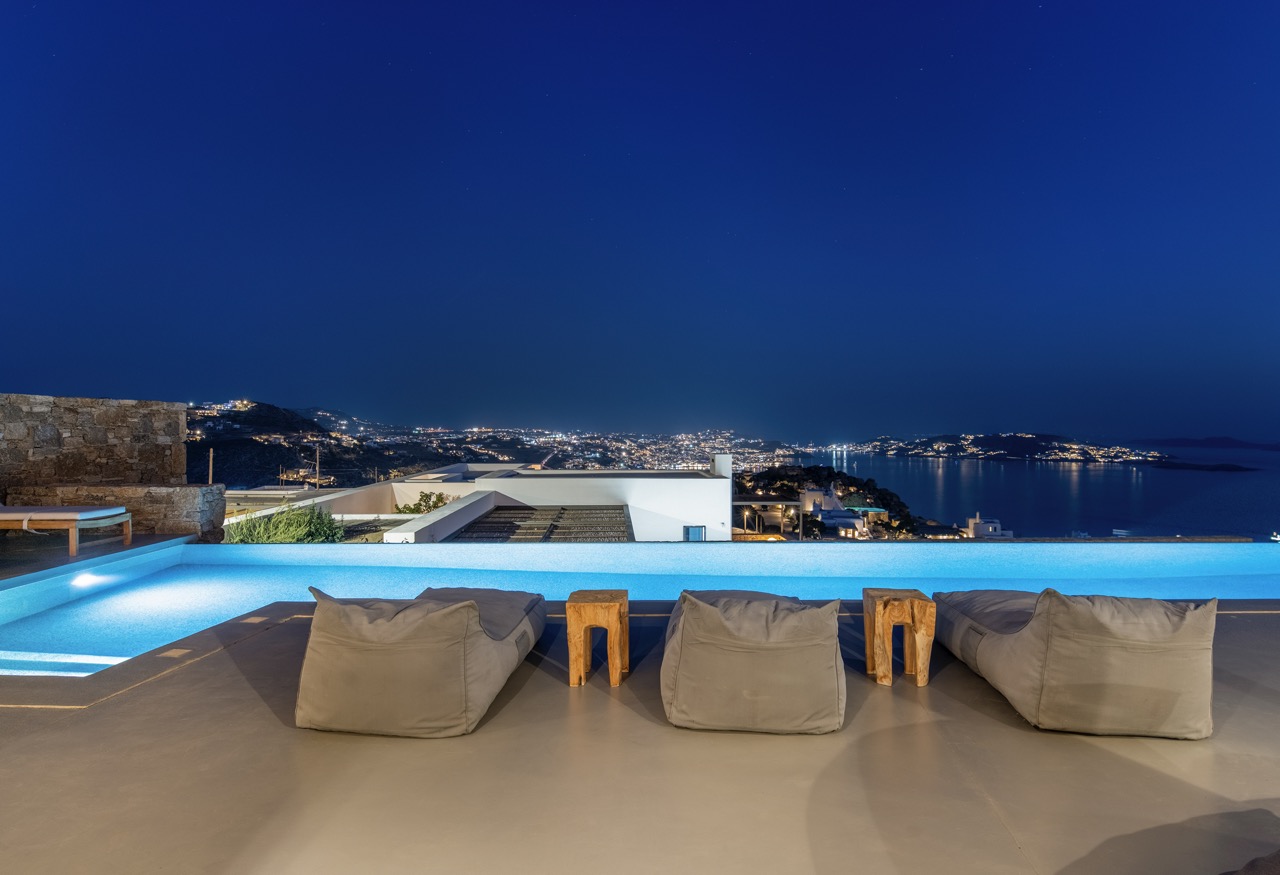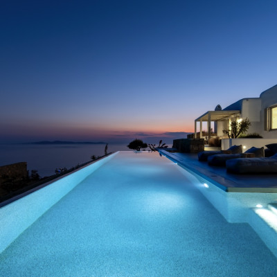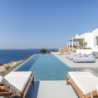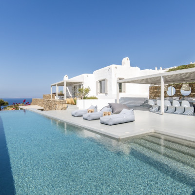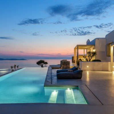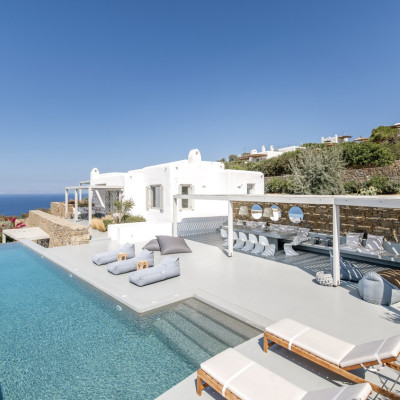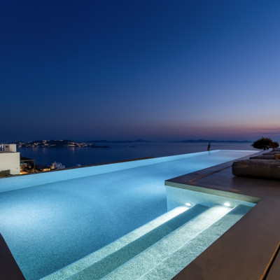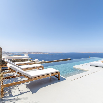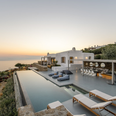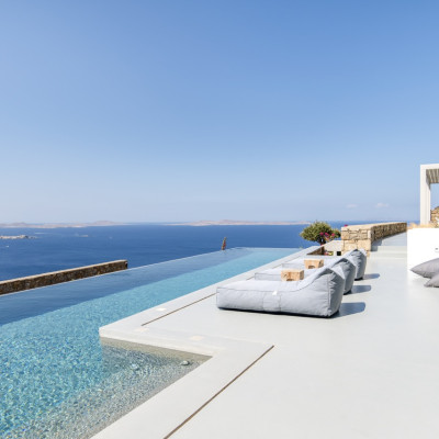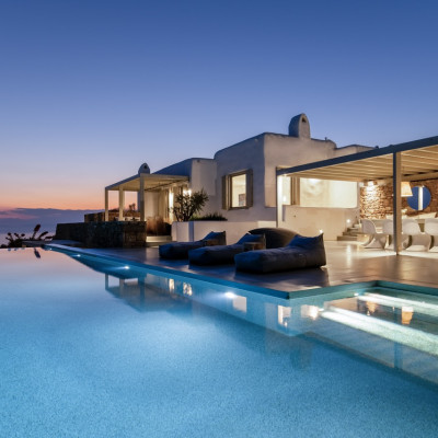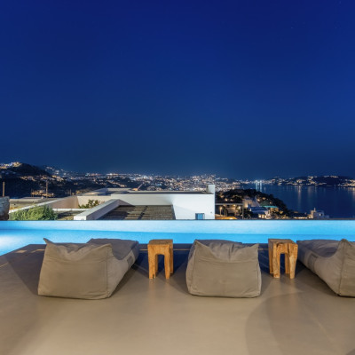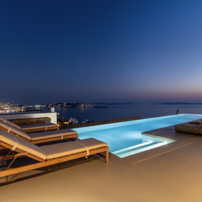Set in the prestigious area of Tourlos, this sophisticated luxury villa offers panoramic views over Mykonos Town and the Aegean Sea, combining contemporary architecture with refined comfort and absolute privacy. Designed for discerning guests, the property delivers a seamless balance between elegant indoor living and expansive outdoor spaces, ideal for unforgettable Mykonos stays.