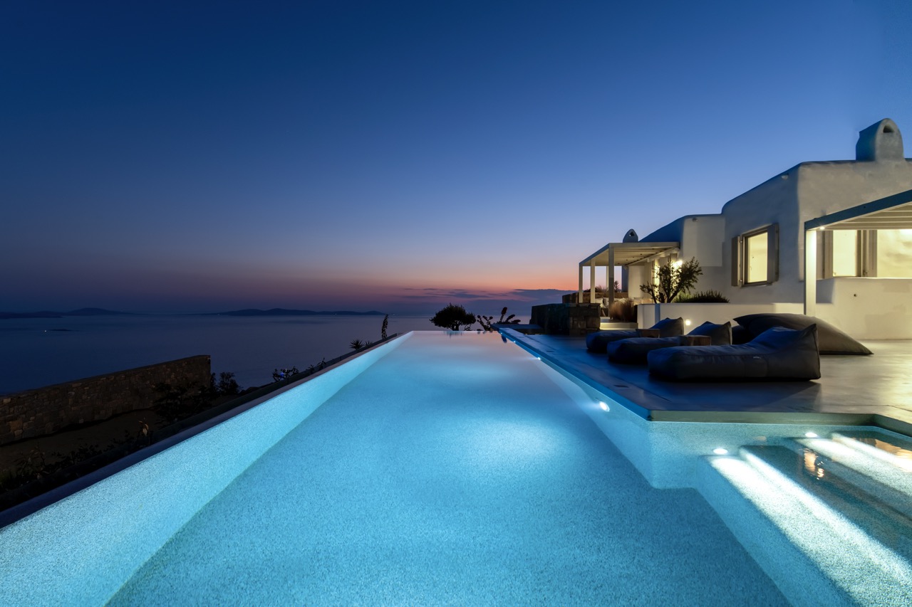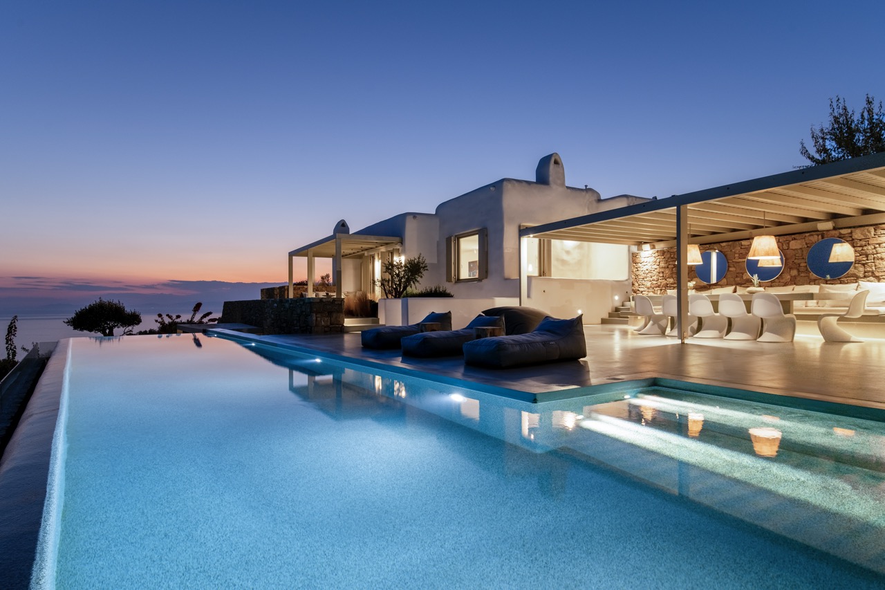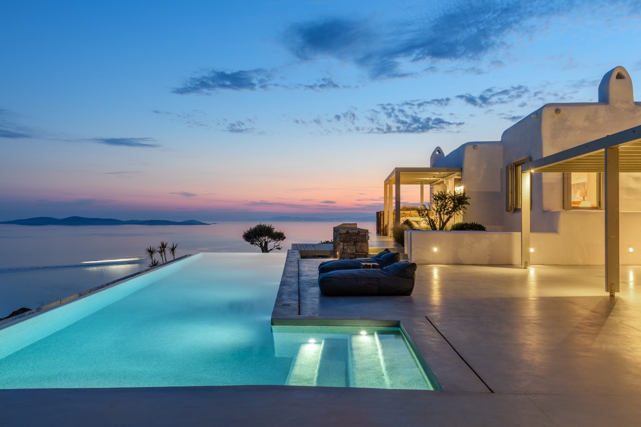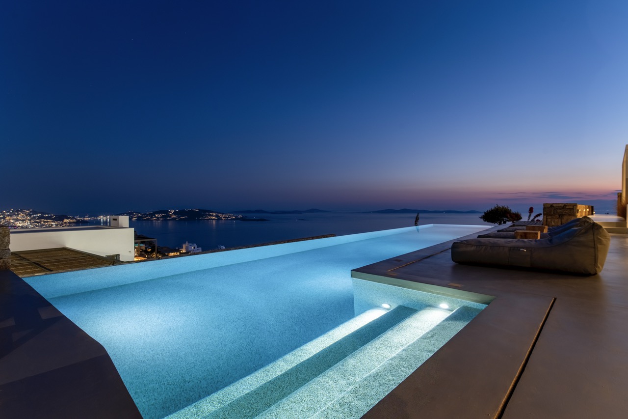 Set in the prestigious area of Tourlos, this sophisticated luxury villa offers panoramic views over Mykonos Town and the Aegean Sea, combining contemporary architecture with refined comfort and absolute privacy. Designed for discerning guests, the property delivers a seamless balance between elegant indoor living and expansive outdoor spaces, ideal for unforgettable Mykonos stays.