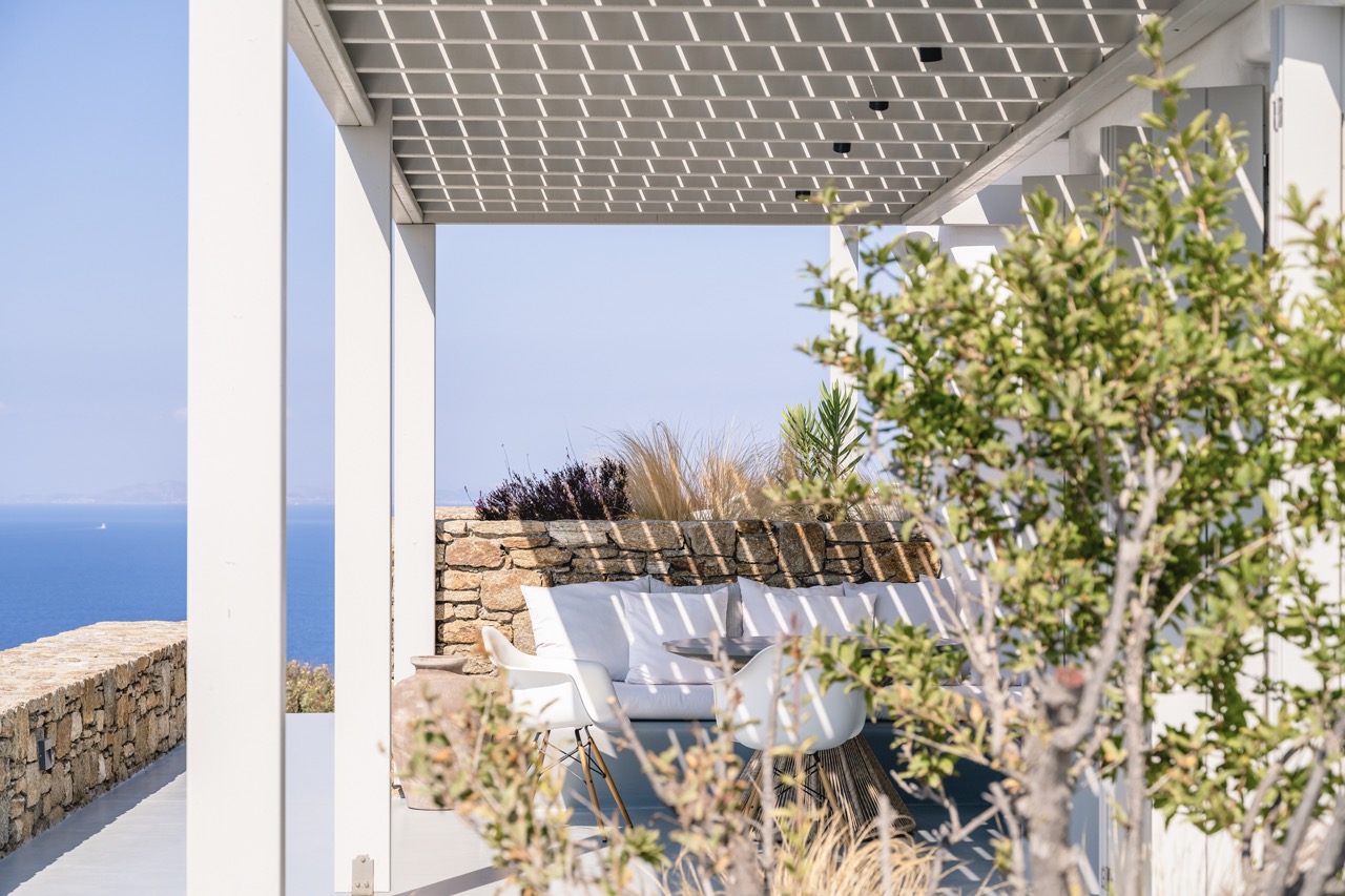 Built-in lounge areas under pergolas