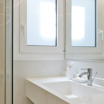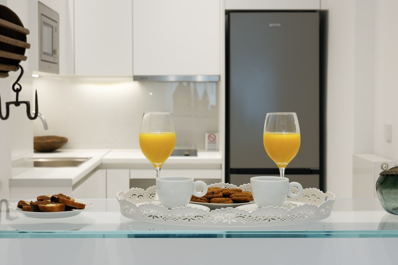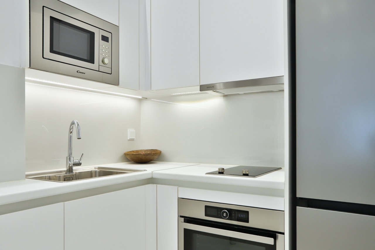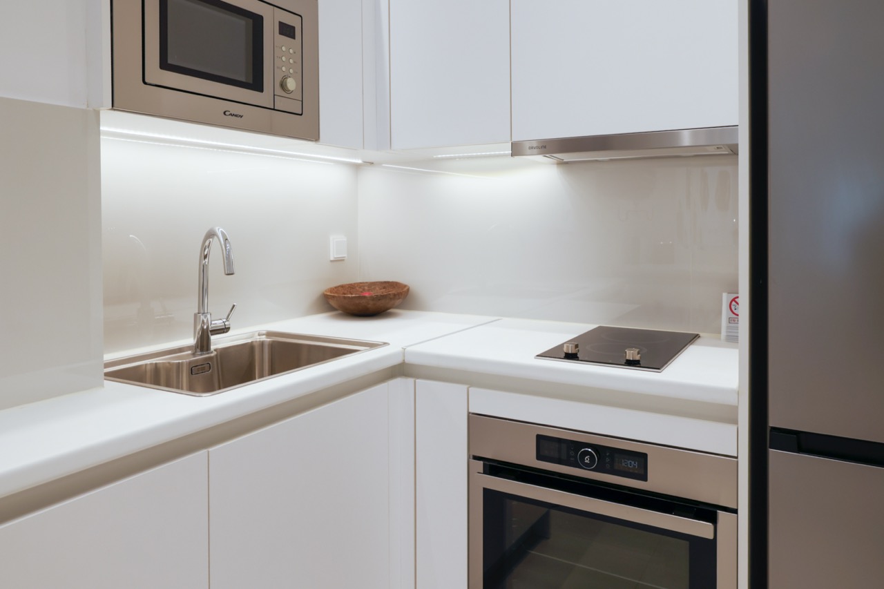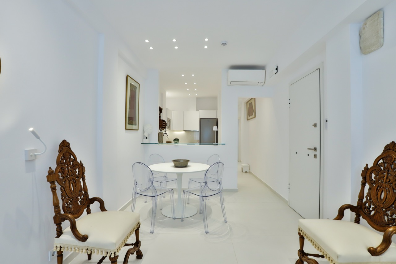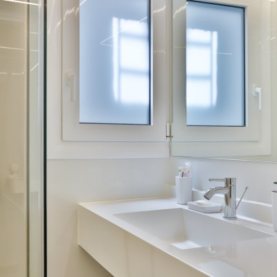 This refined one-bedroom apartment blends neoclassical charm with contemporary design. It features a queen-size bed and a comfortable sofa bed, accommodating up to four guests. The fully equipped kitchen includes all modern appliances for an easy, home-like stay, while the modern bathroom is fitted with elegant fixtures and amenities.