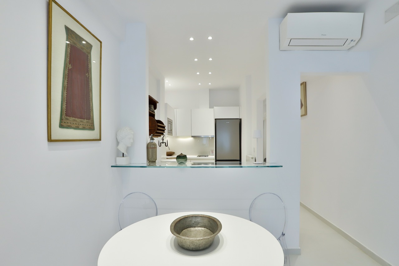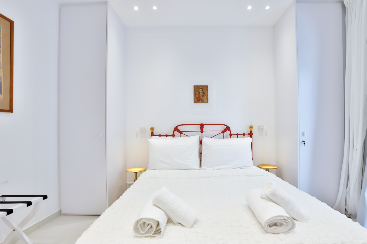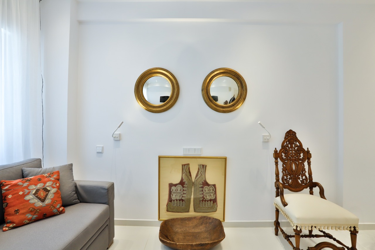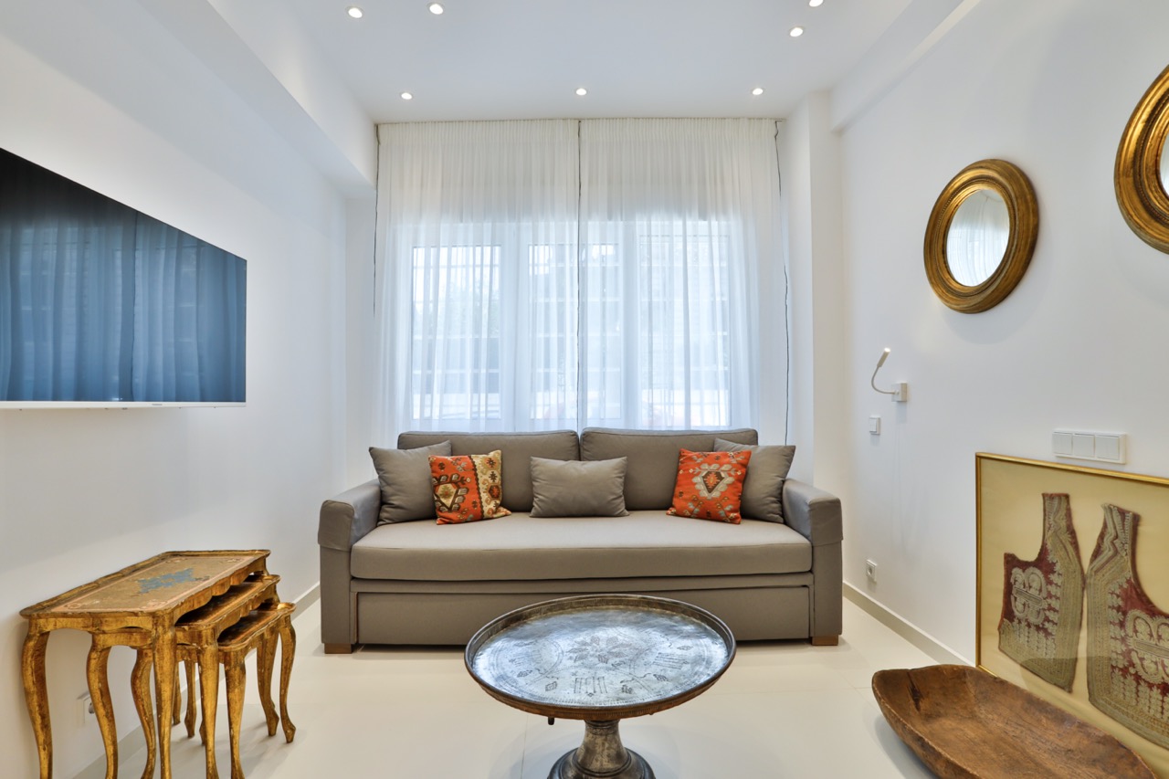 What makes this unit truly special is its private garden patio — a small green oasis ideal for morning coffee or quiet evenings under the Athenian sky. High ceilings, antique accents, and warm tones complete the atmosphere of discreet elegance. Perfect for couples, small families, or friends seeking comfort and authenticity just steps from the Acropolis walkway.