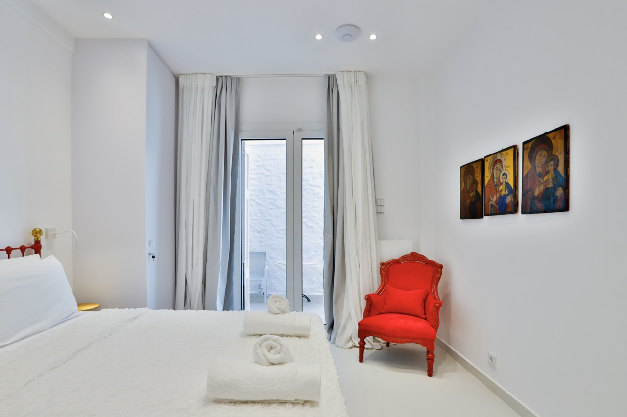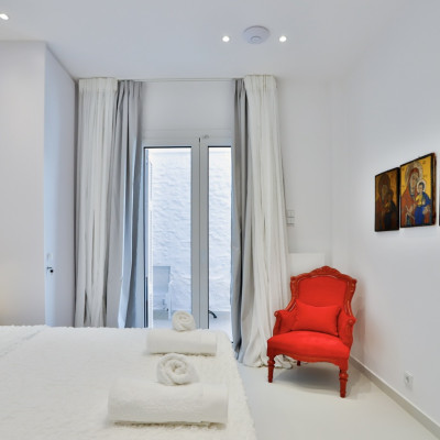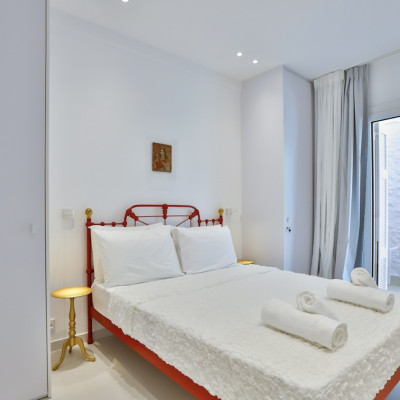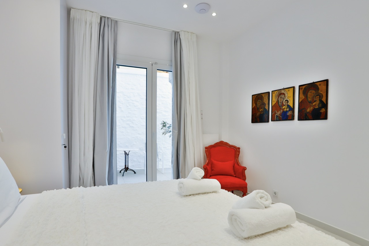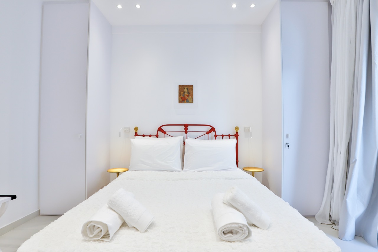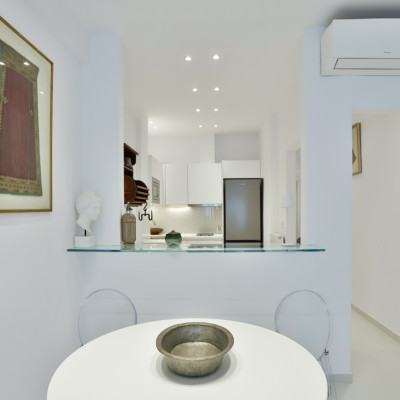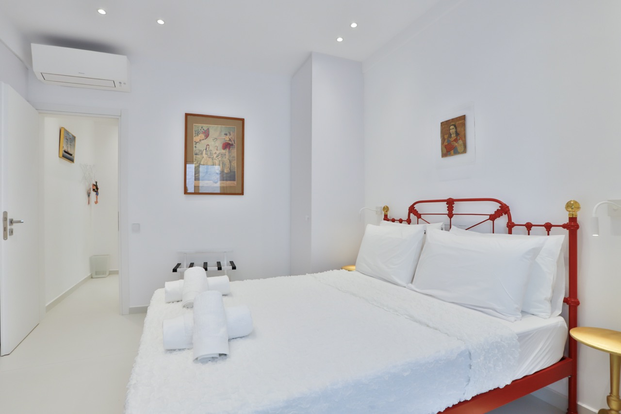 What makes this unit truly special is its private garden patio — a small green oasis ideal for morning coffee or quiet evenings under the Athenian sky. High ceilings, antique accents, and warm tones complete the atmosphere of discreet elegance. Perfect for couples, small families, or friends seeking comfort and authenticity just steps from the Acropolis walkway.