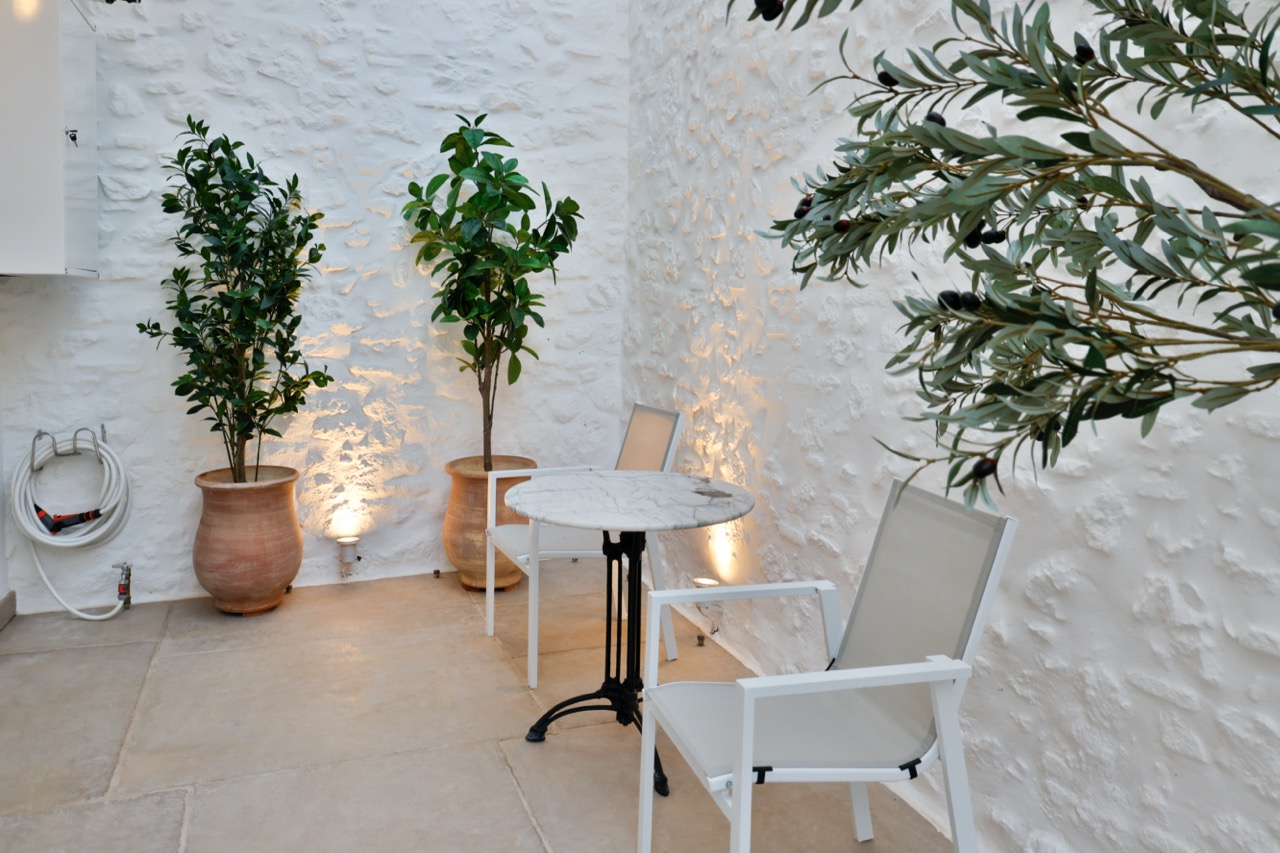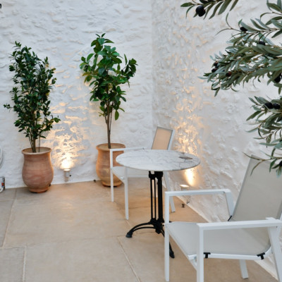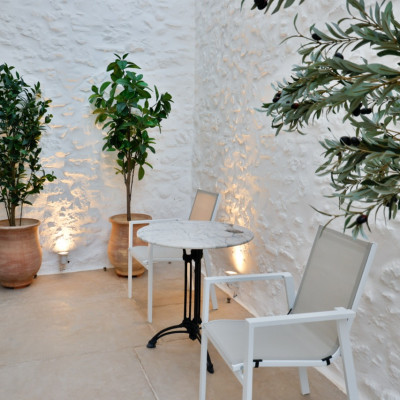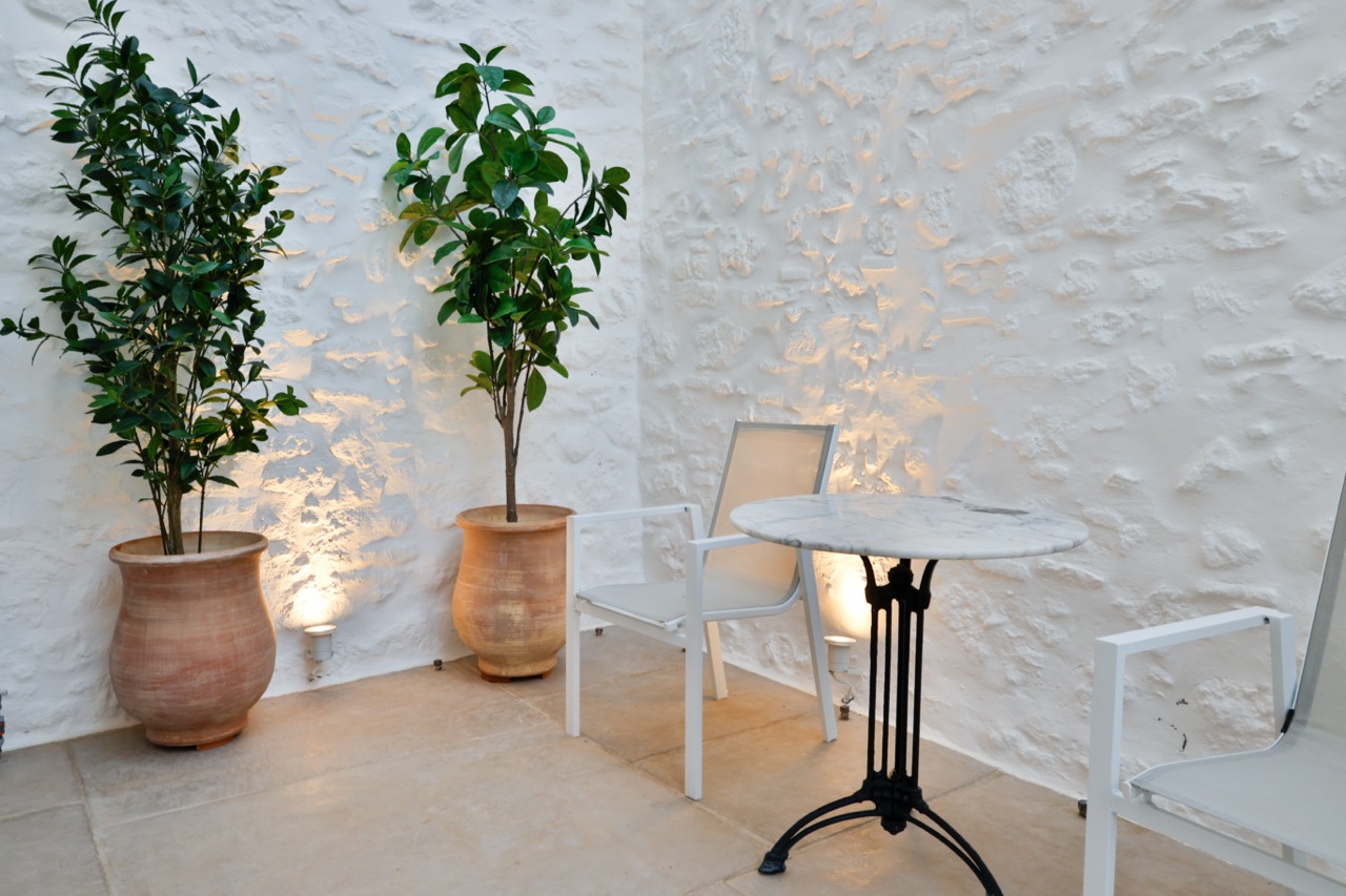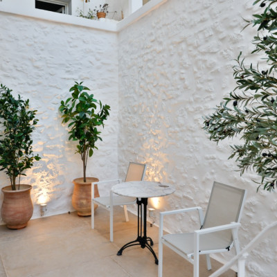 Here, mornings begin with coffee and golden light spilling over the Parthenon, while evenings unfold with sunset cocktails or a bottle of wine under the stars. Elegant outdoor furnishings, soft ambient lighting, and the calm energy of the Athenian sky create a space ideal for morning yoga, romantic dinners, or quiet reflection.