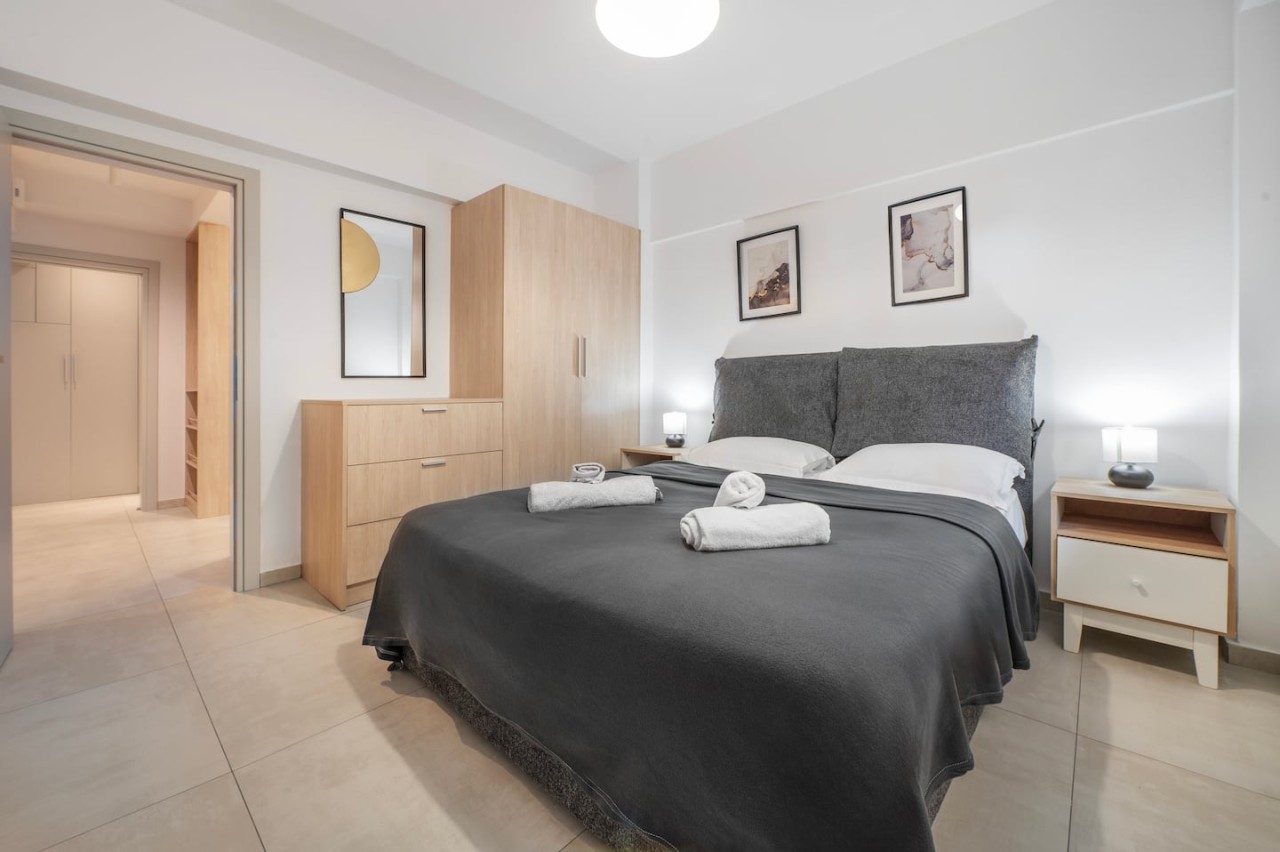 This modern one-bedroom apartment is the perfect place for your stay in the vibrant capital city of Greece. It is a fully renovated basement apartment that can accommodate 4 people. It features a fully equipped kitchen and bathroom. In the living room, there is a sofa that converts into a double bed, as well as a workspace. Yelonos is just 400 meters from the American Embassy. Our apartment is offering easy access to local attractions, dining, and shops ensuring a memorable experience.