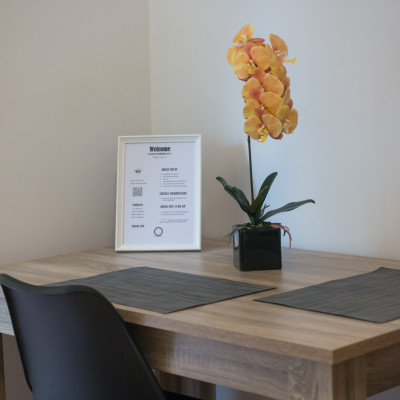 Welcome to an ideal urban retreat! This modern and cozy apartment combines comfort and convenience seamlessly. The bright and spacious living room features a comfortable sofa that doubles as a sofa bed, a flat-screen TV for entertainment, and a dining area for meals or work. The fully equipped kitchen includes a refrigerator, stovetop, oven, coffee maker, electric kettle, and dining table.