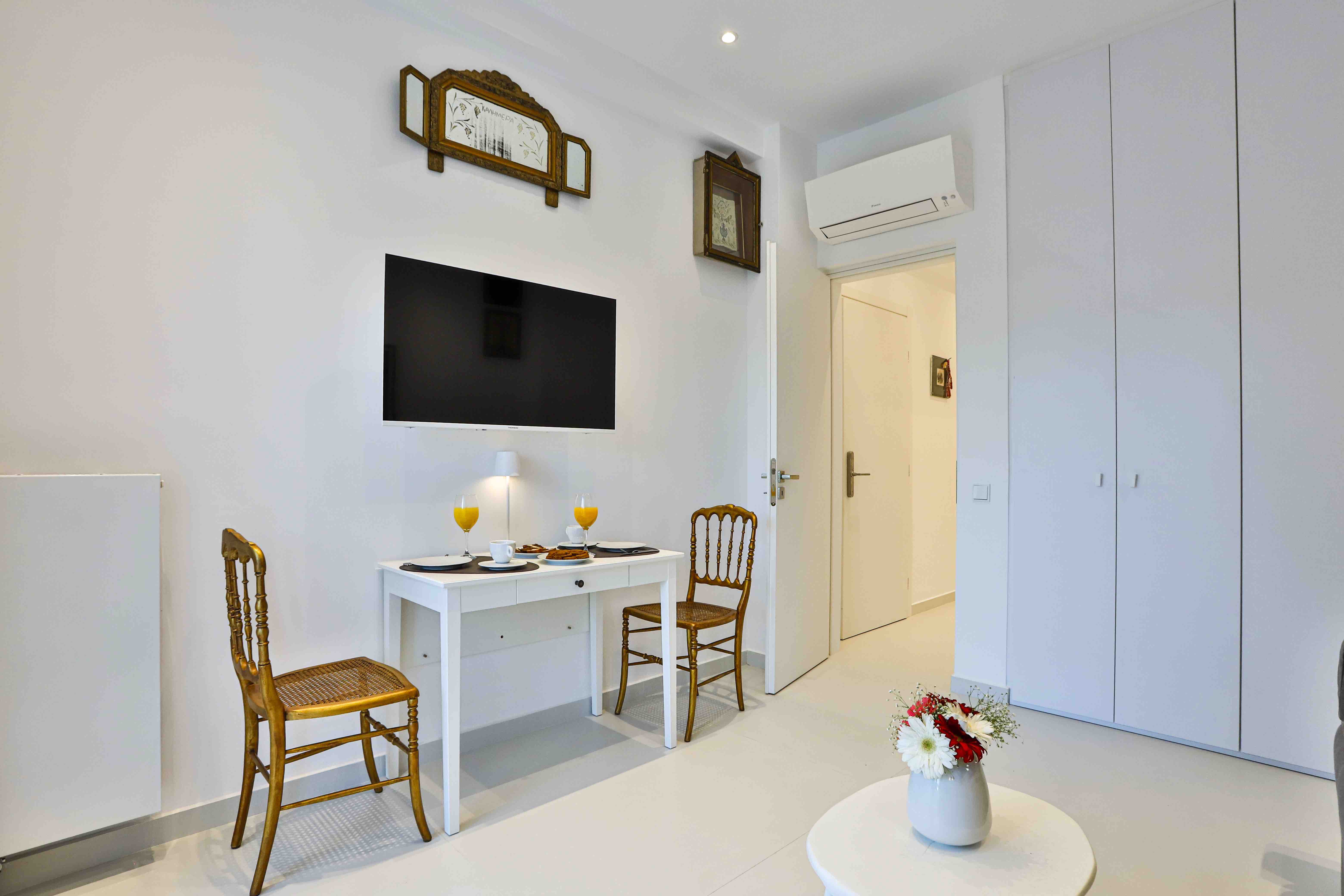 Stylish second-floor apartment in a neoclassical building with unforgettable Acropolis panorama. Enjoy modern comfort and a front-row seat to Greece’s history, just moments from Plaka and the city’s vibrant life.