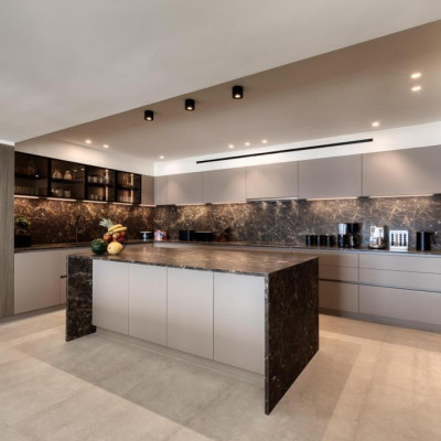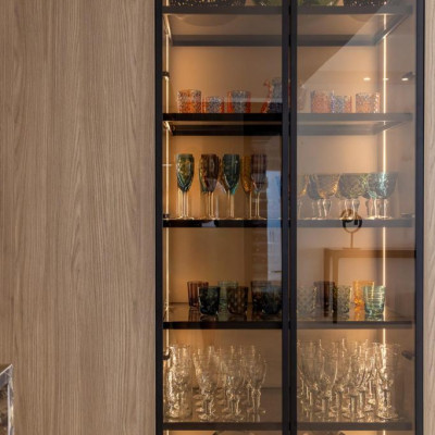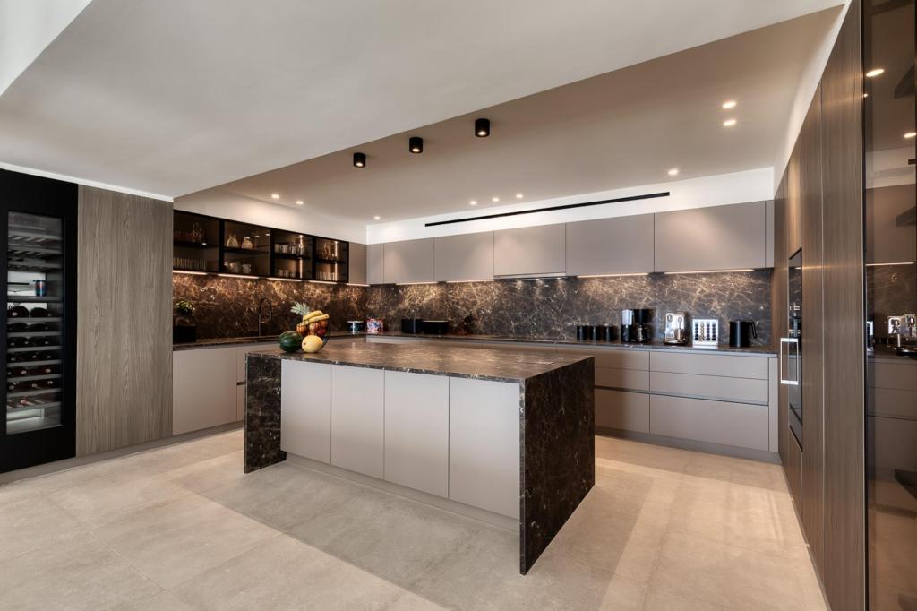 A bespoke kitchen equipped with high-end Gaggenau appliances offers the perfect space for culinary creations, whether casual family meals or formal dining experiences. With ample space and state-of-the-art features, it caters to even the most discerning chef.