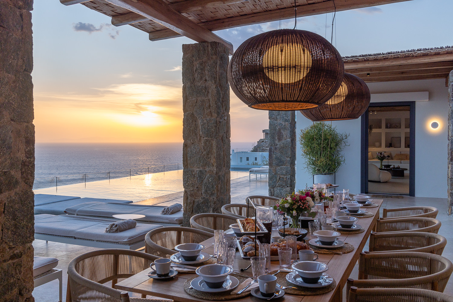Experience unparalleled tranquility and sophistication in this exquisite villa, where panoramic views of the Aegean Sea and breathtaking sunsets create an idyllic retreat. Positioned directly across from the sacred island of Delos, this stunning residence offers a rare and privileged vantage point to admire its historic beauty while soaking in mesmerizing sunset views.