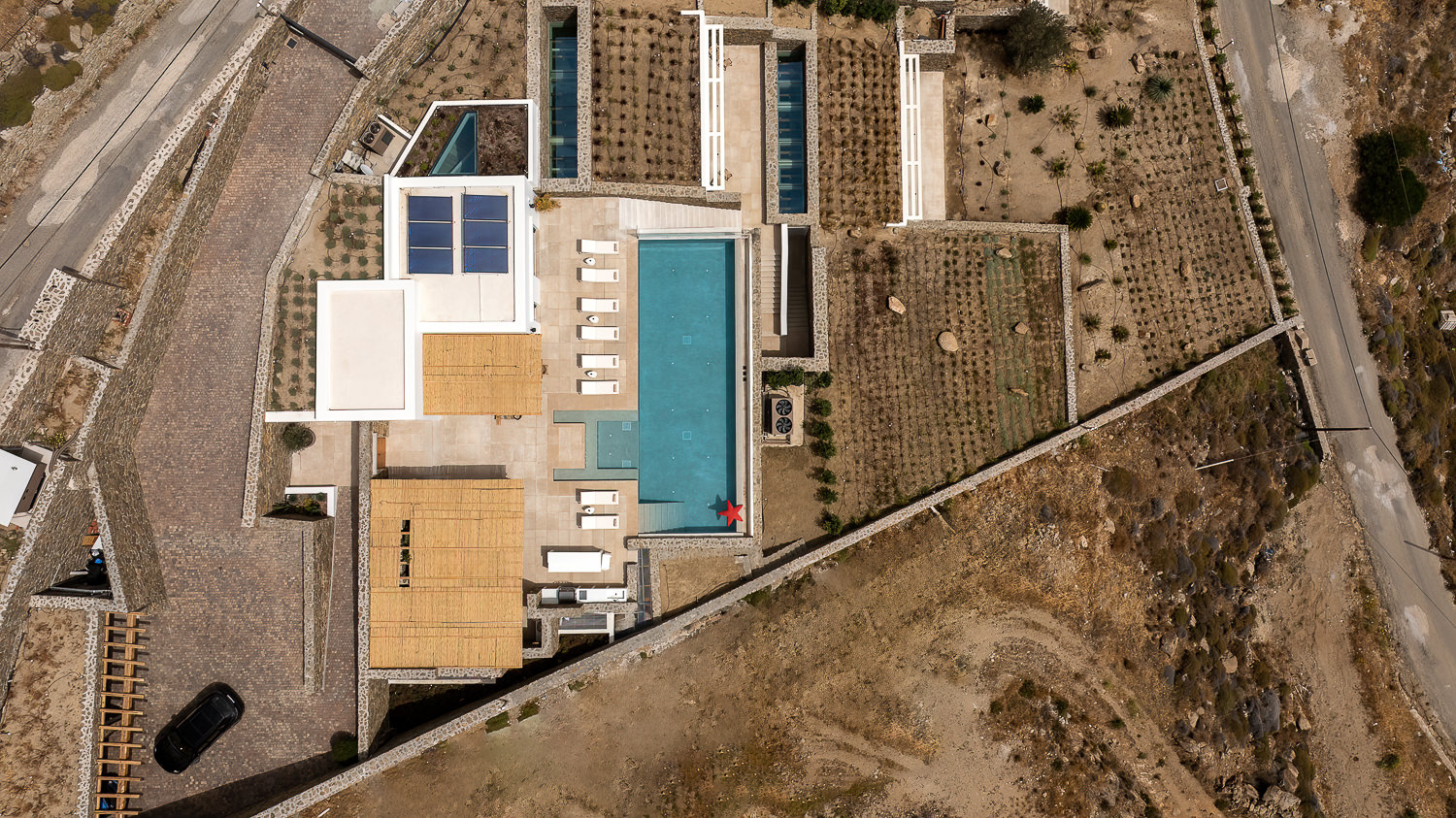 Designed for relaxation and entertainment, the property features a heated infinity pool with a built-in Jacuzzi (heating upon request), wind-protected outdoor areas, a fully equipped Techno Gym, and a dedicated playroom for younger guests. High-tech smart home amenities, a professional-grade staff kitchen, and extensive shaded outdoor dining and lounge spaces ensure a stay of supreme comfort and indulgence.