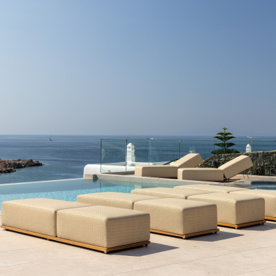 Spanning 350 m², the villa is designed across a single level with six generously sized bedrooms, each featuring an en-suite bathroom. The open-plan design creates a seamless flow between the interior and exterior, with large glass doors that invite natural light and stunning sea views into the living spaces.