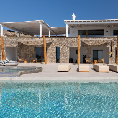 This newly built, high-end property offers 350 m² of luxurious living space set on a private 1800 m² plot, located just 80 meters from the pristine Cavo Glyfadi Beach in the exclusive Aleomandra area of Mykonos. Combining contemporary architectural design with ultimate comfort, the villa provides a peaceful, secluded escape while offering convenient access to the island’s vibrant attractions.