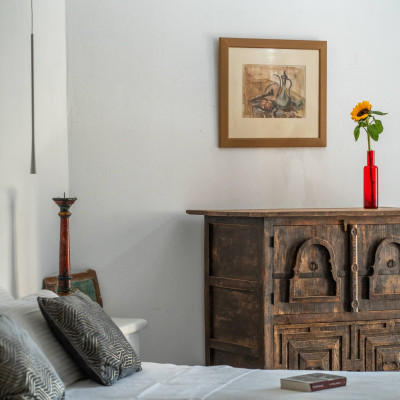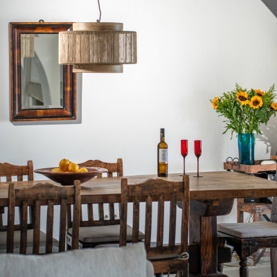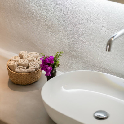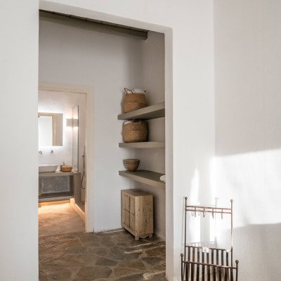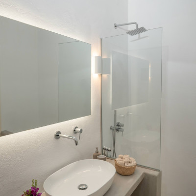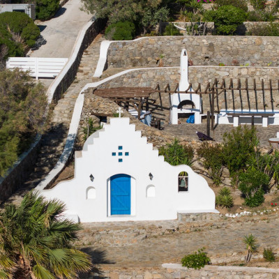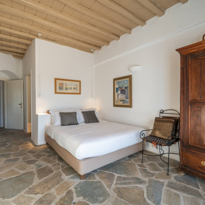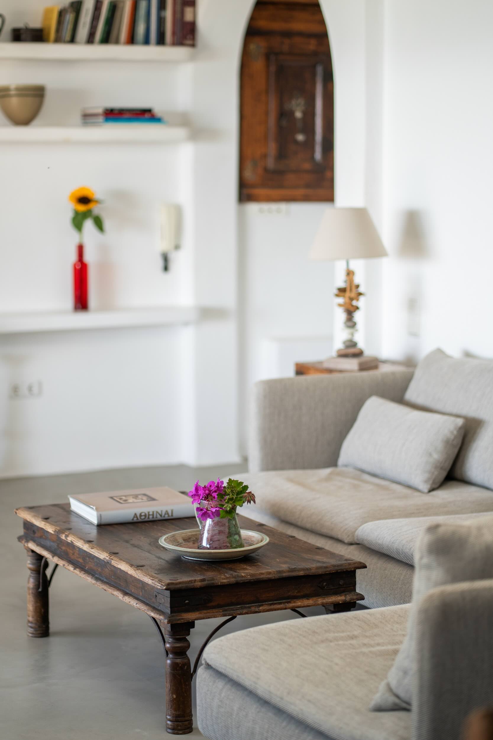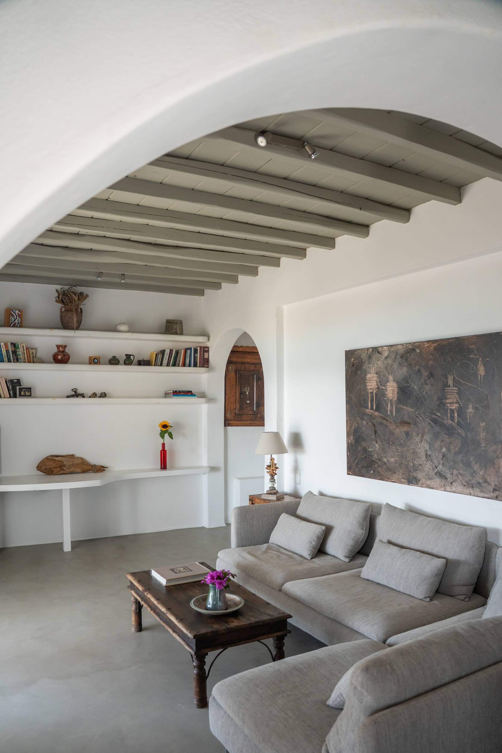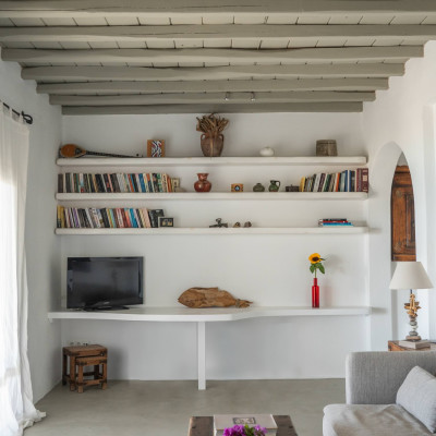 Designed with classic whitewashed architecture and soft, curved lines, the villa blends timeless Cycladic charm with contemporary comfort. It features four spacious bedrooms, each offering privacy, comfort, and beautiful sea views — ideal for families or groups of friends seeking a relaxed yet sophisticated stay.