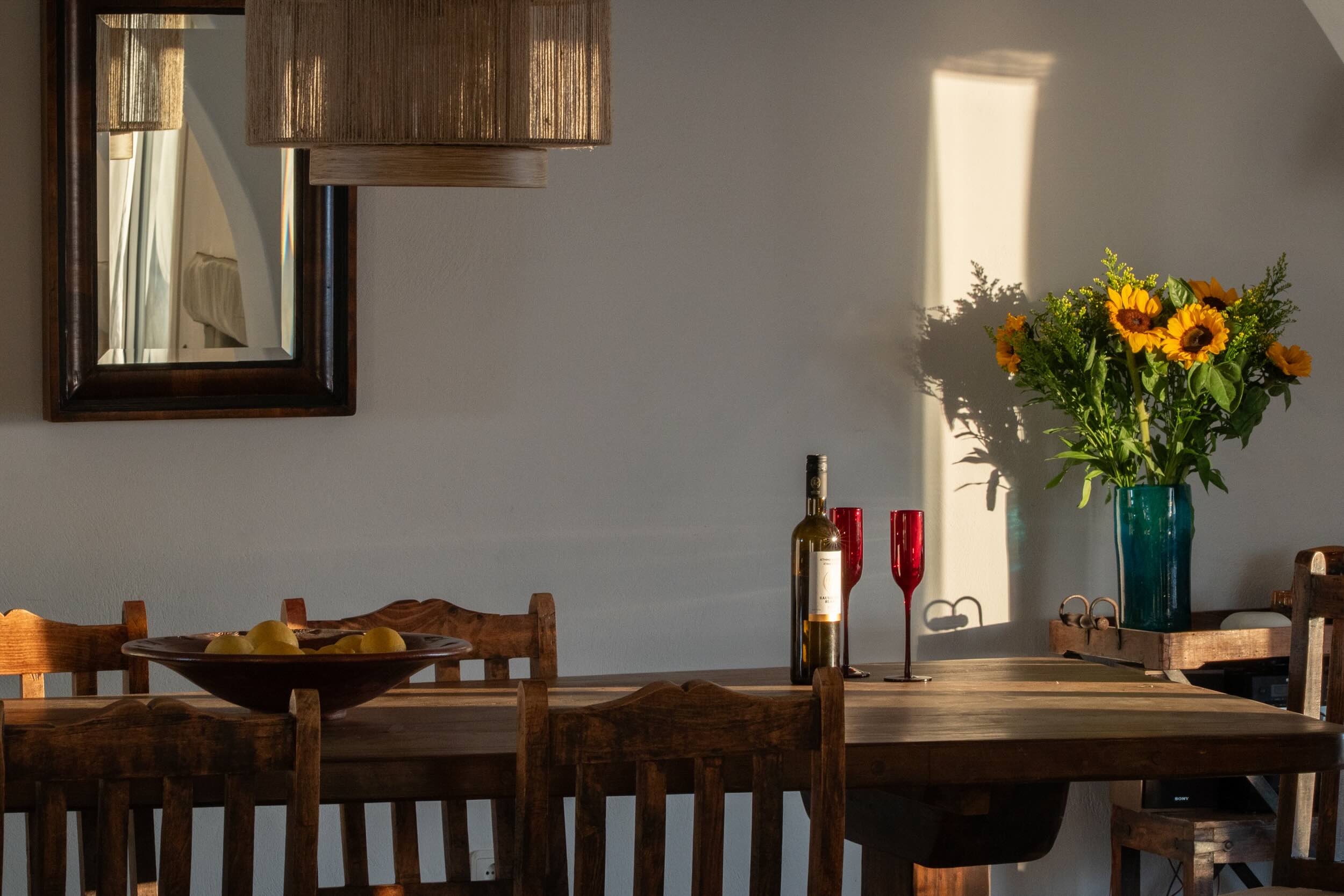 The interiors are bright and airy, featuring a fully equipped modern kitchen and stylish bathrooms with high-end finishes. Large openings connect the indoor spaces seamlessly with the outdoors, inviting guests to enjoy al fresco dining, sunbathing, or peaceful moments by the sea.