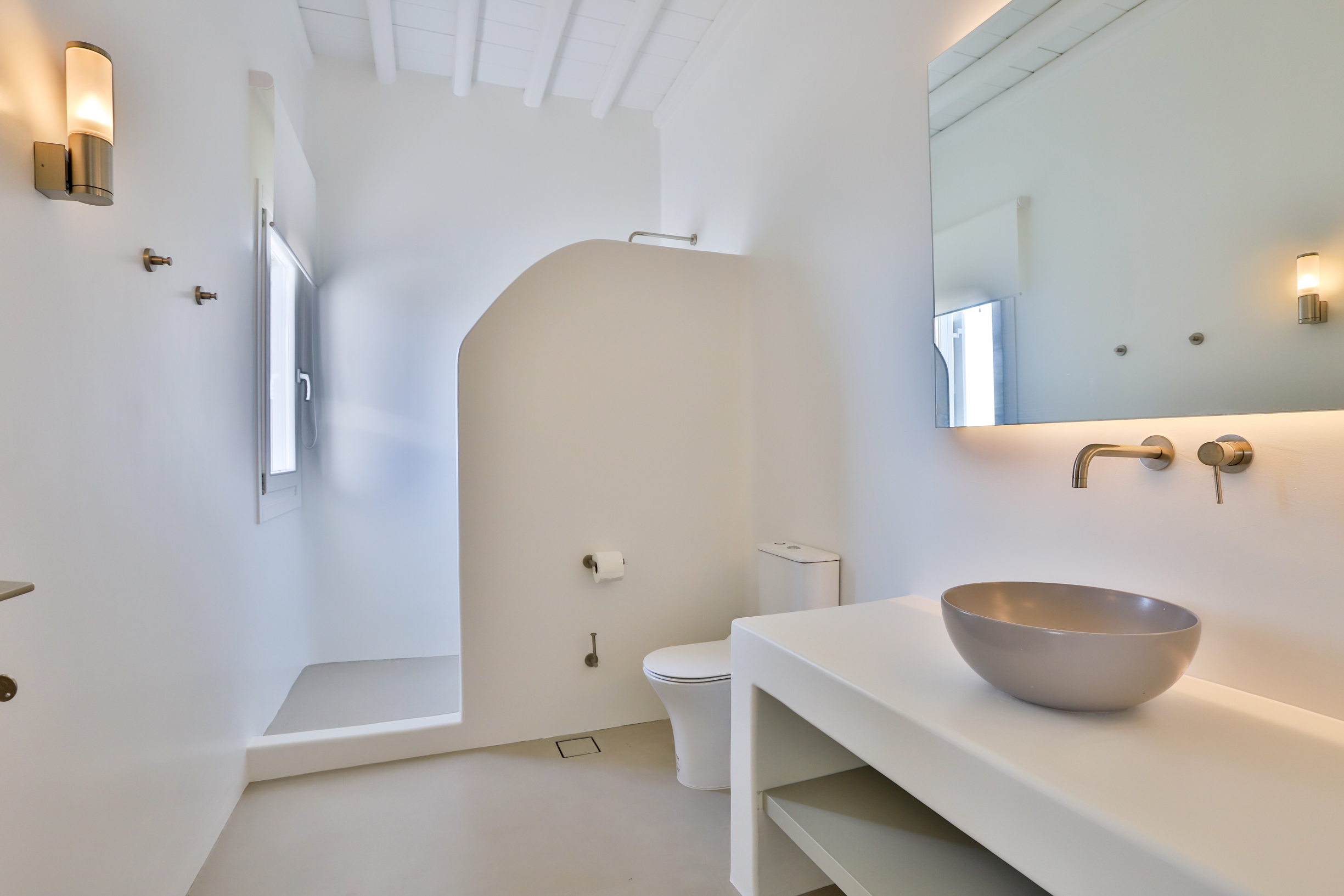 Discover a serene retreat in the heart of Mykonos, a contemporary villa designed for refined island living. Featuring nine spacious ensuite bedrooms, this residence comfortably accommodates up to 18 guests. Seven rooms are fitted with plush double beds, while two offer inviting single beds, perfect for children or solo travelers. Each bedroom has its own bathroom and individual climate control, ensuring privacy and comfort throughout your stay.