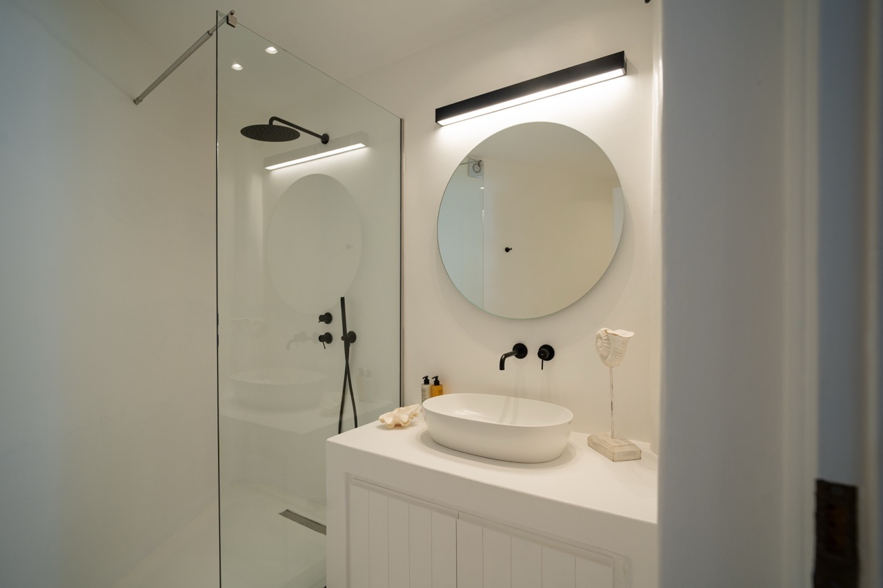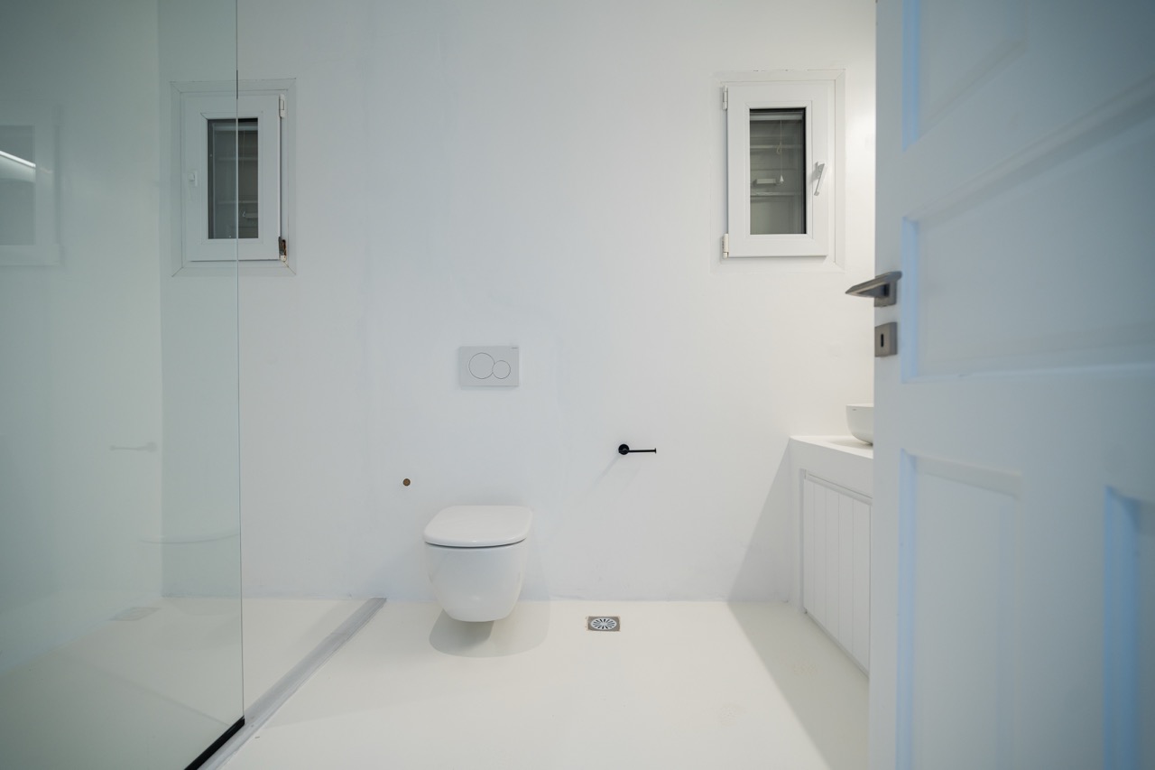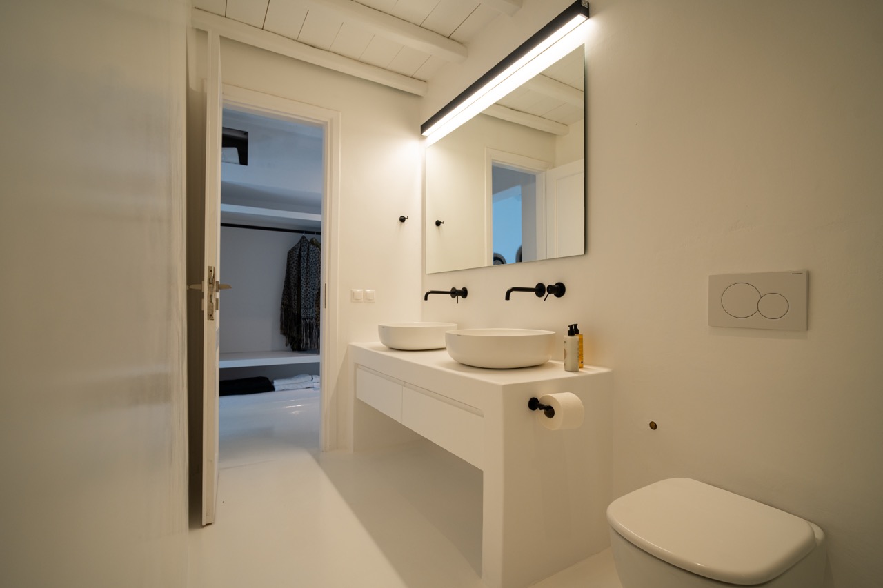 Spread across three levels, the villa accommodates up to eight guests in four en-suite double bedrooms. Bright interiors feature minimalist design and open onto outdoor spaces that highlight the surrounding seascape.