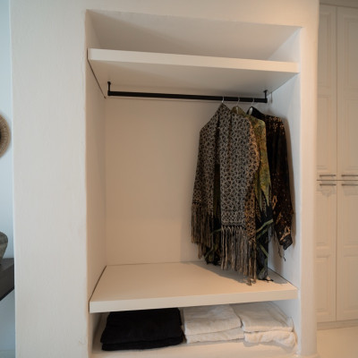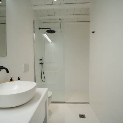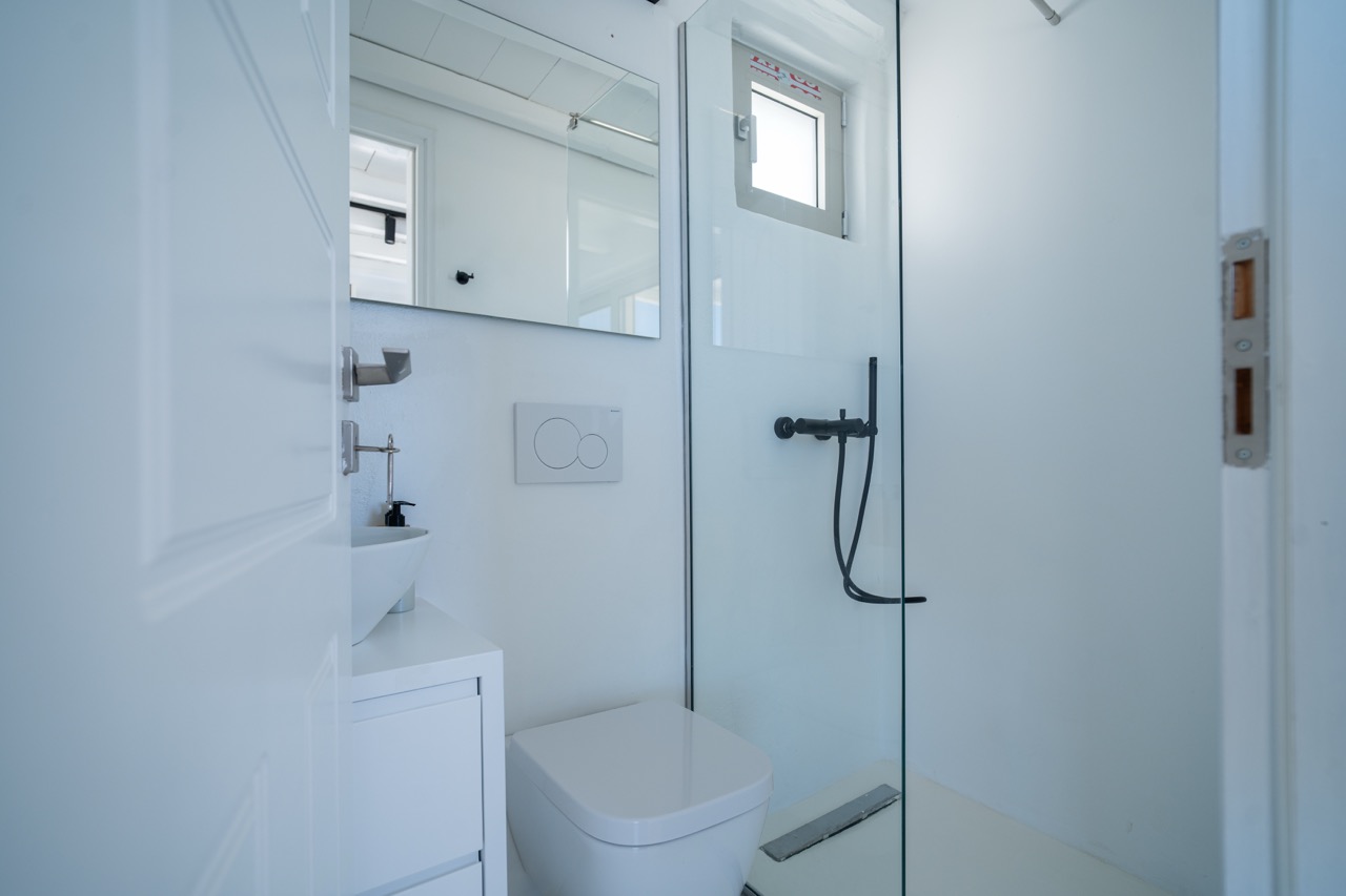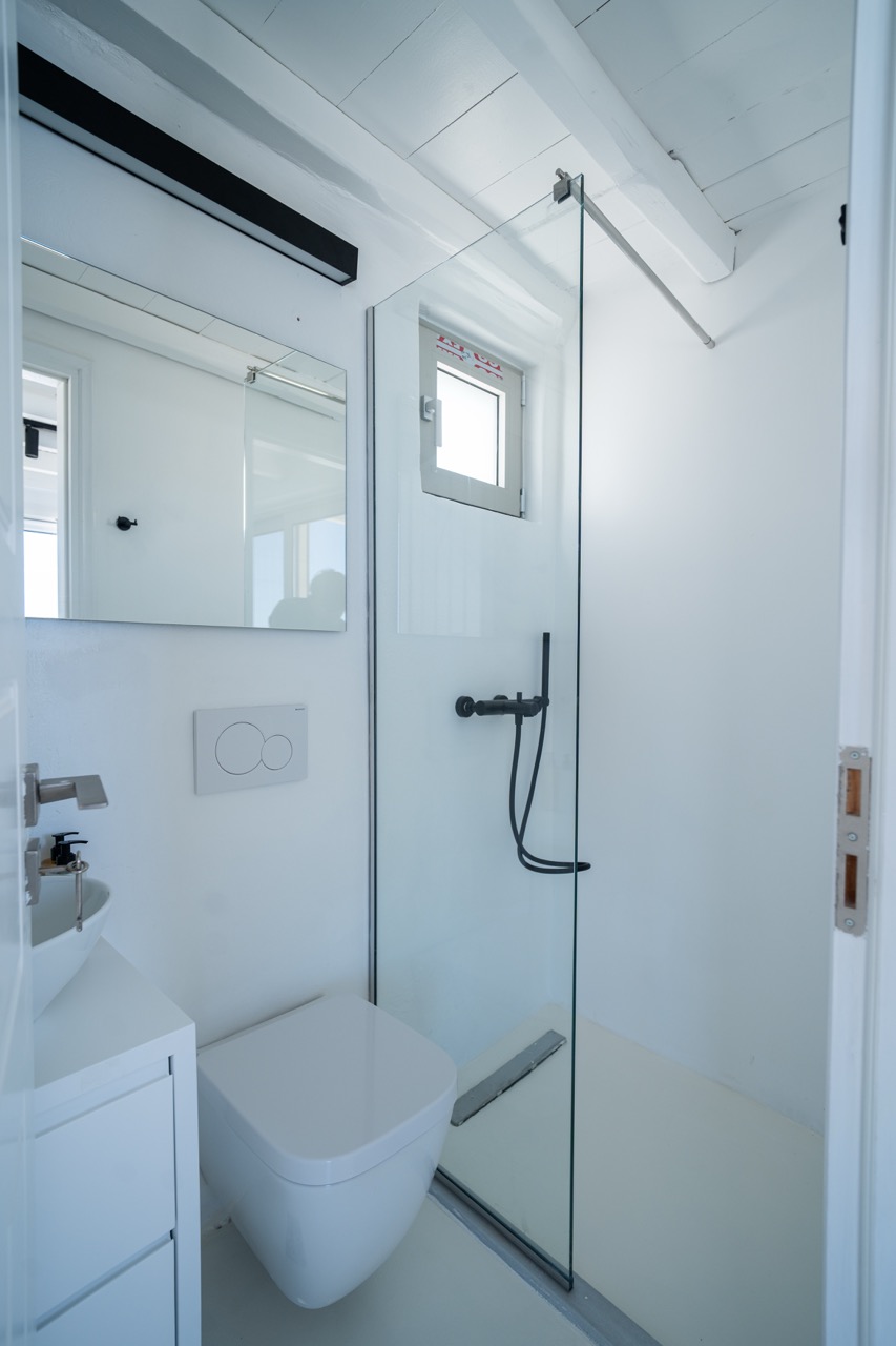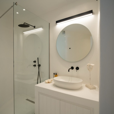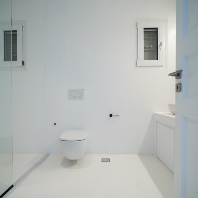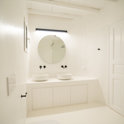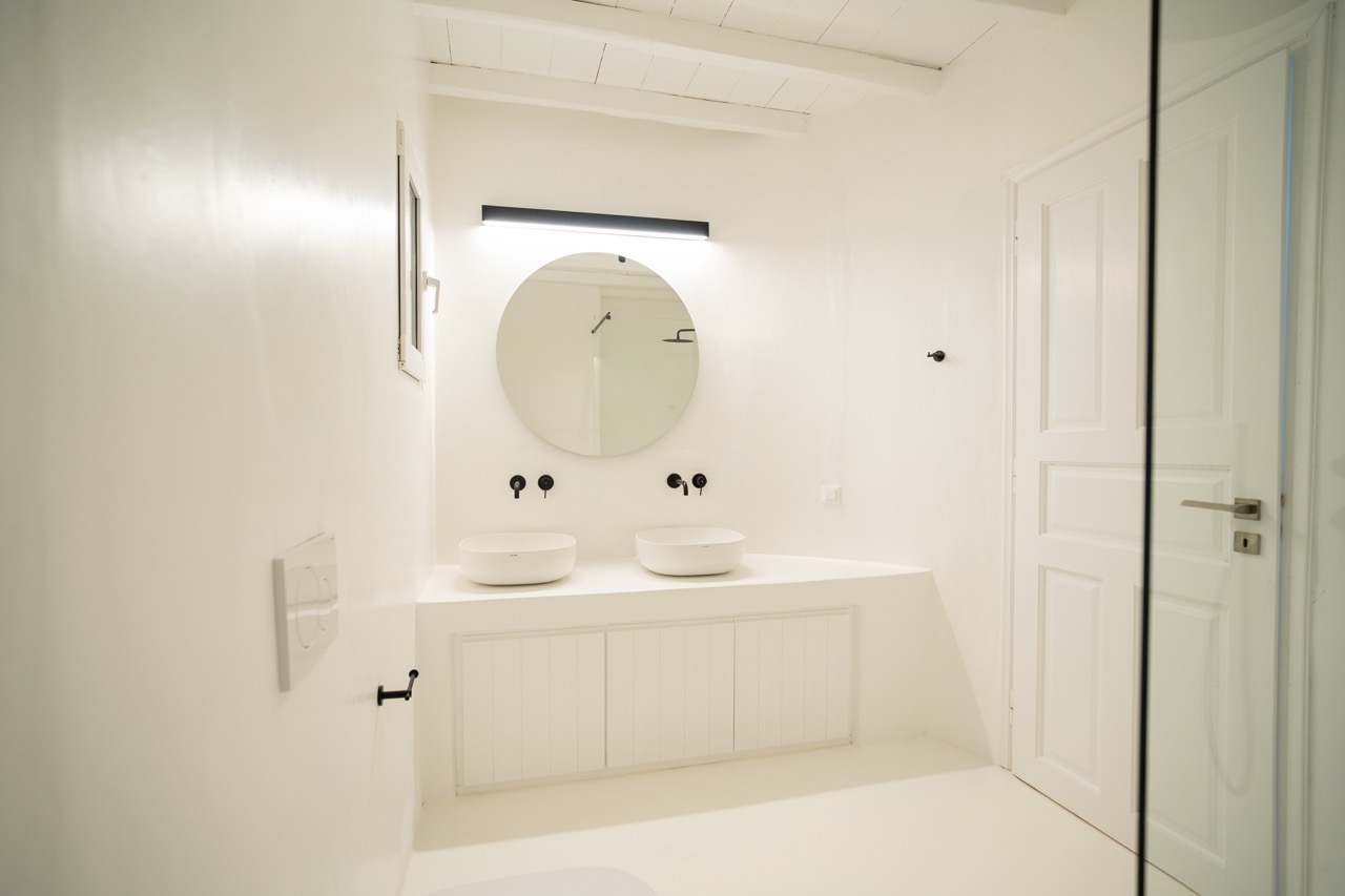 Spread across three levels, the villa accommodates up to eight guests in four en-suite double bedrooms. Bright interiors feature minimalist design and open onto outdoor spaces that highlight the surrounding seascape.