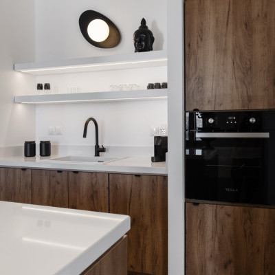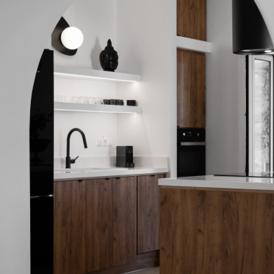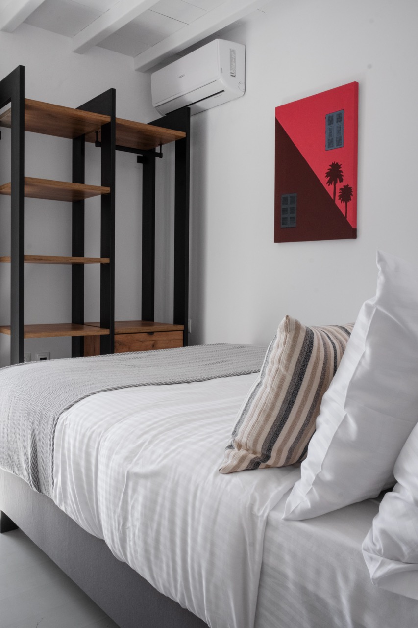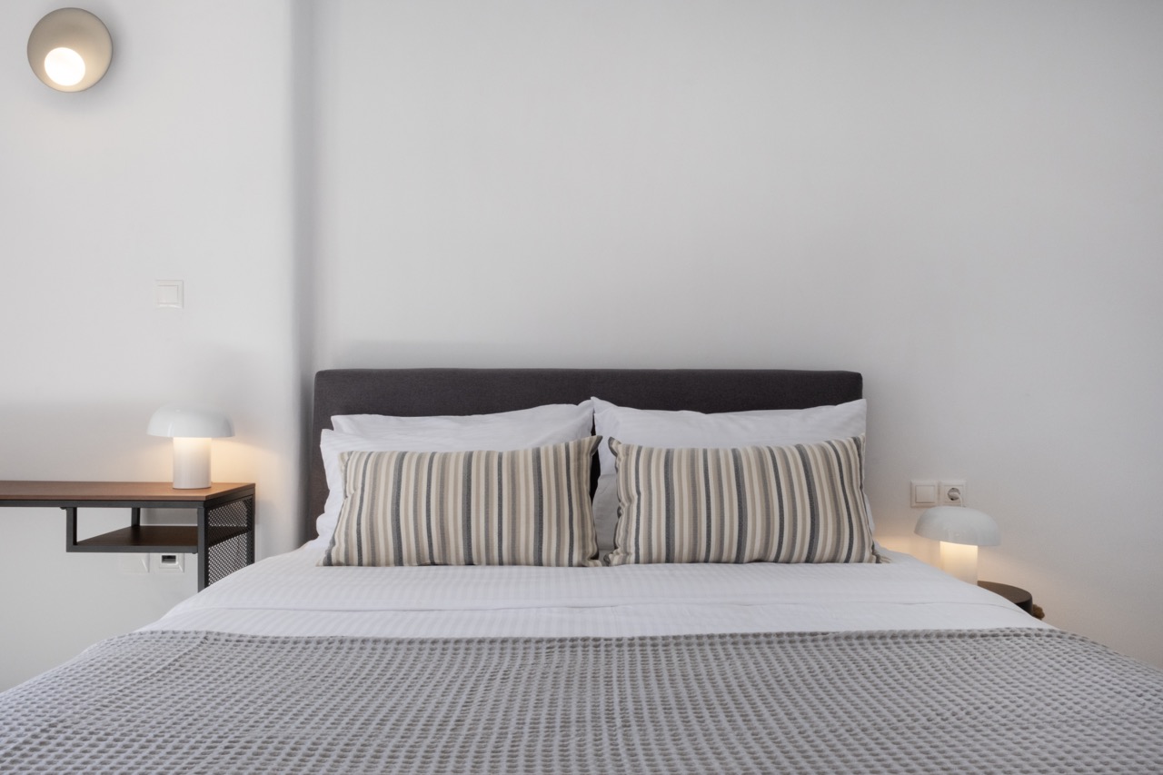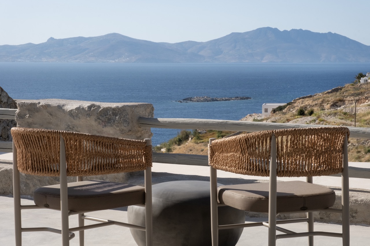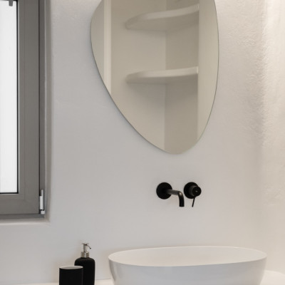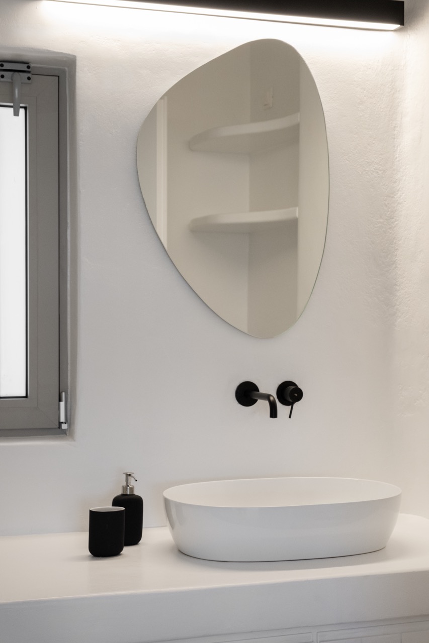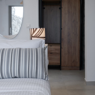 Designed to accommodate up to 8 guests, Villa Mahal features four beautifully appointed bedrooms, including an independent suite with direct access to the pool area — ideal for guests seeking additional privacy. The interiors are bright and airy, blending classic Cycladic architecture with modern elegance. Expansive windows flood the living spaces with natural light while framing breathtaking sea views from every angle.
